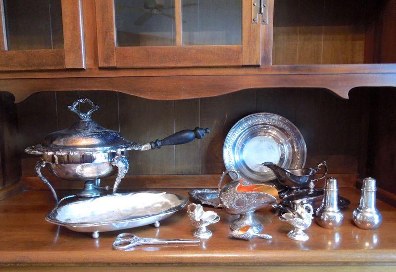 Lot 150: Silver Plated Serving Pieces with Chaffing Dish