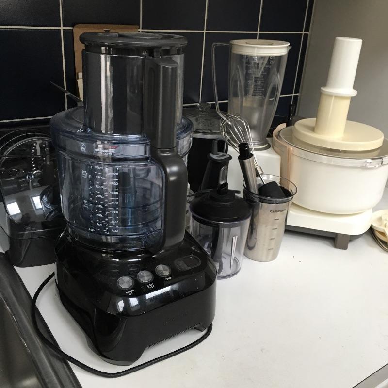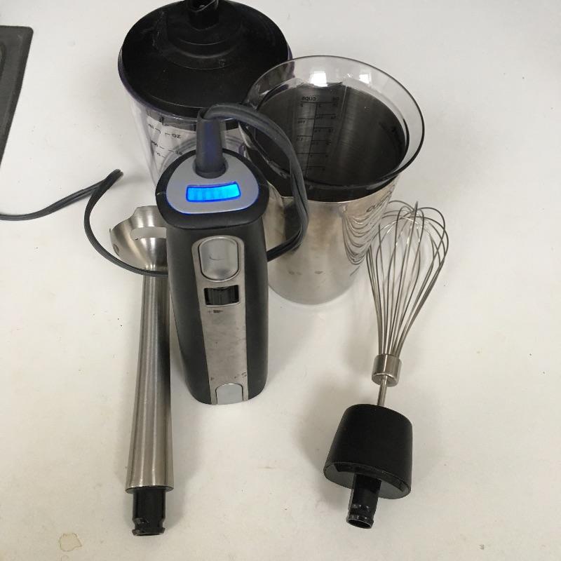 Small kitchen appliances. Lot includes like new Breville model # BFP800XL/A food processor with attachments, Krups hand blender model # GPA3, Bosch food processor, Black and Decker handy chopper and more. A great selection of top brands for all your kitchen needs. All units powered on when tested.