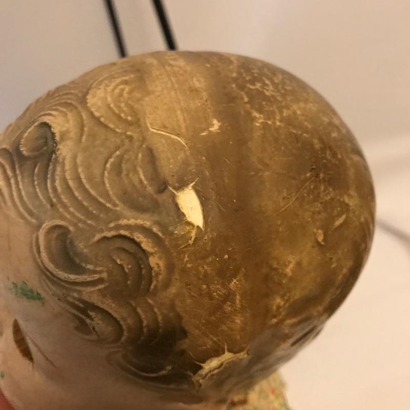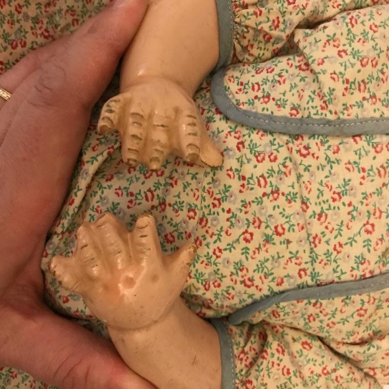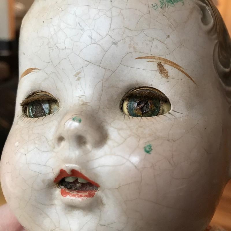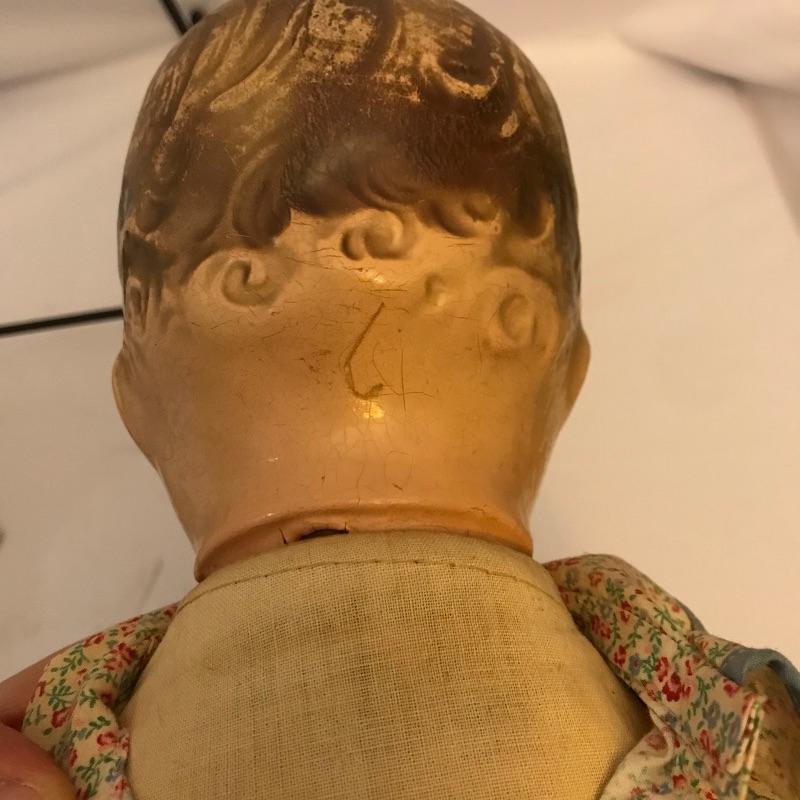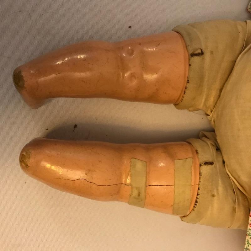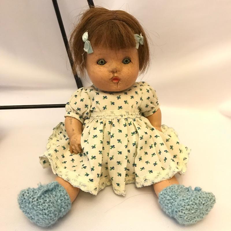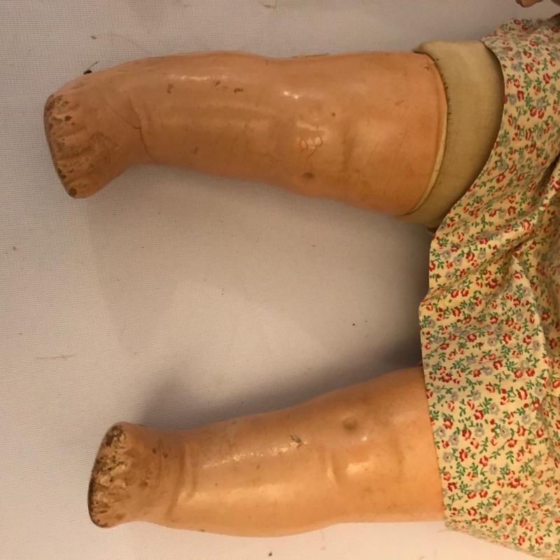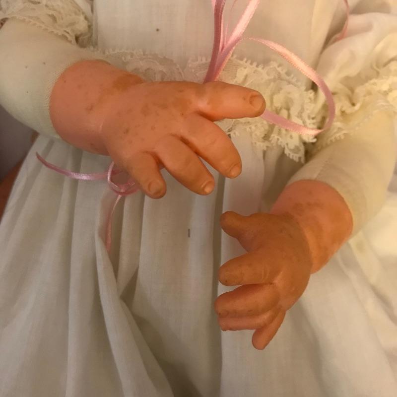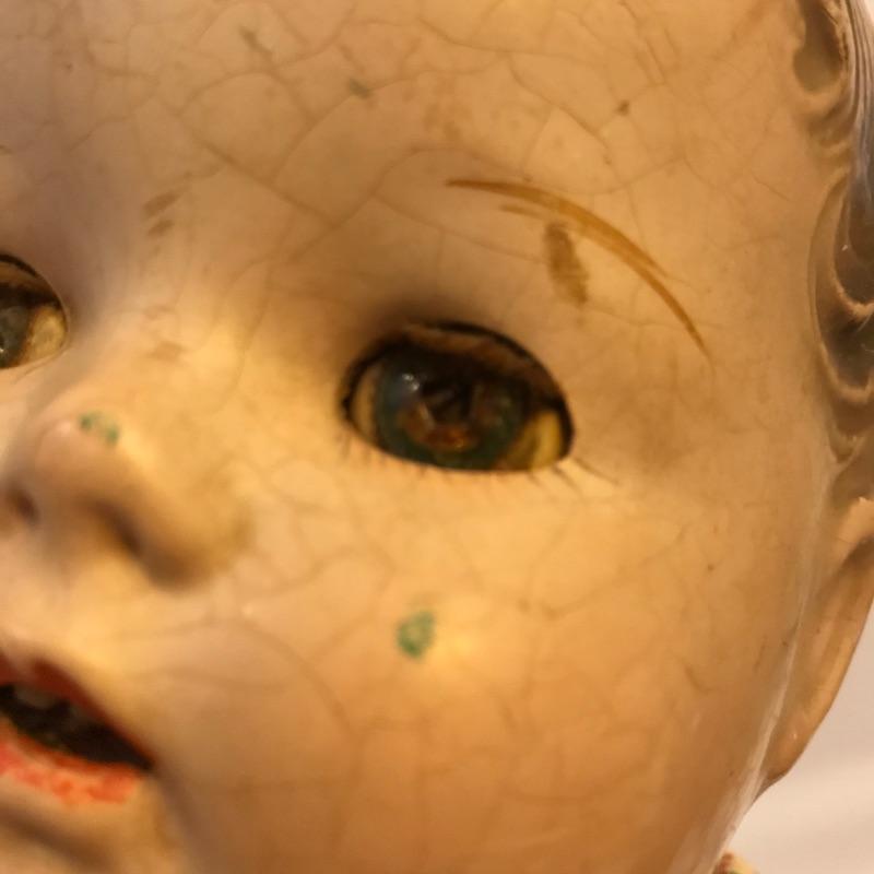 Three antique baby dolls with sleepy eyes. Lot includes two dolls with cloth torsos and a Horsman doll with a celluloid torso. The doll with the white christening dress and Horsman doll both have known markings shown in photos. The two cloth torso dolls are about 19” and the smaller Horsman doll is approximately 12”. All three dolls appear to have painted eyes. See photos. Shipping available.