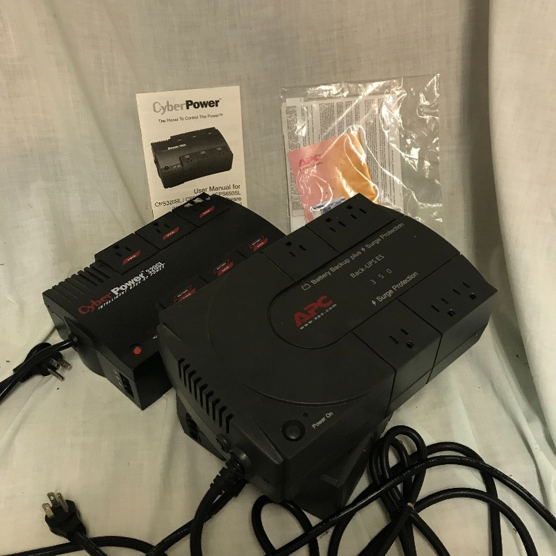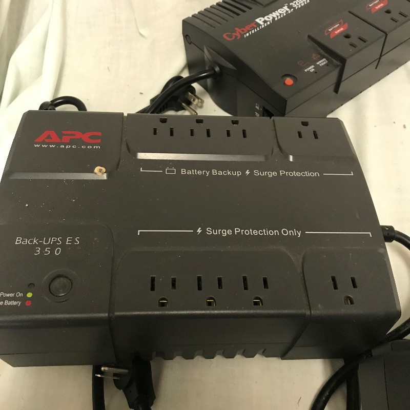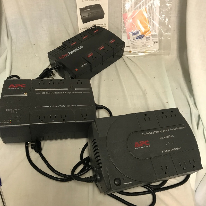 Protect your valuable appliances from summer storms with these two APCs and one Cyber Power surge protectors with battery back ups. All work when plugged in but it is possible they need new batteries. Local pick up only.