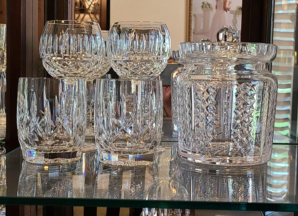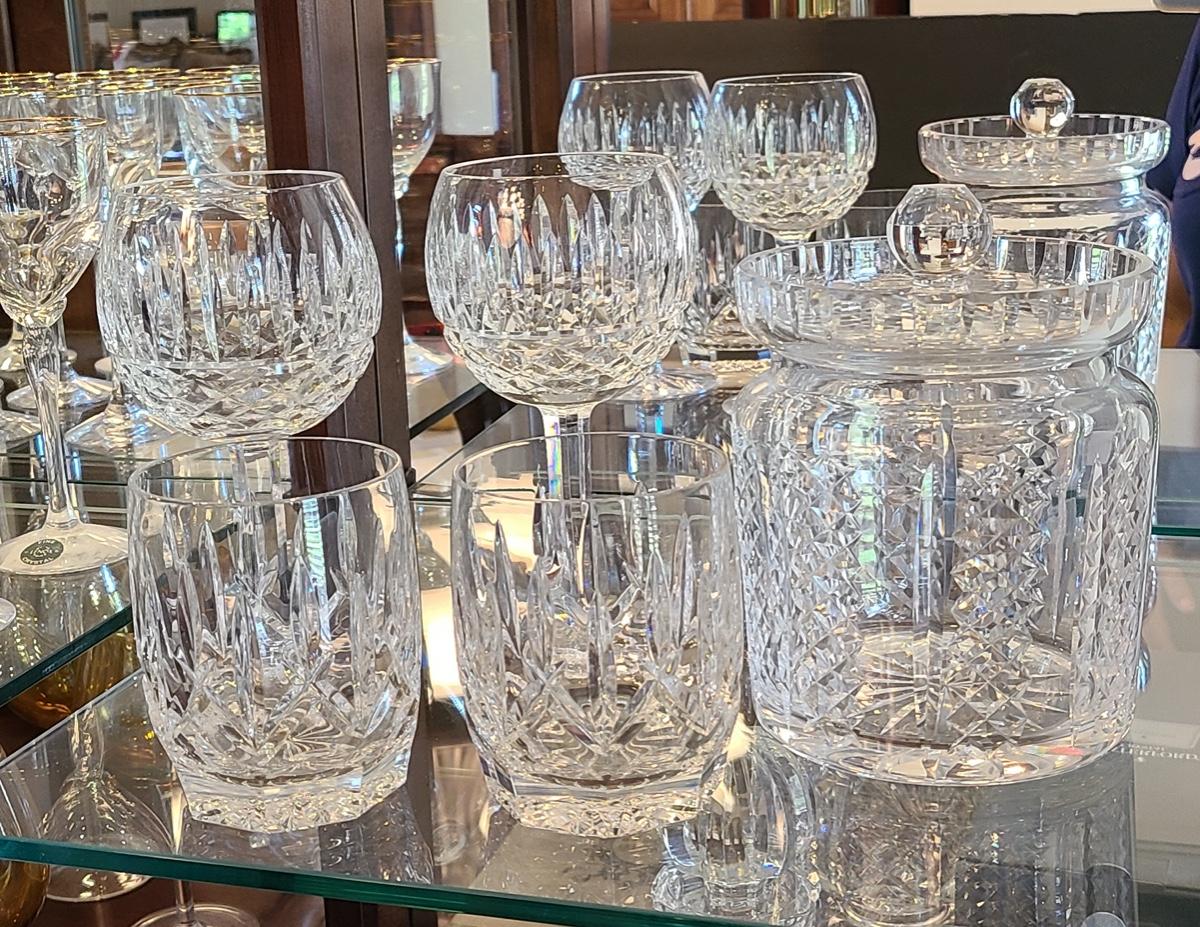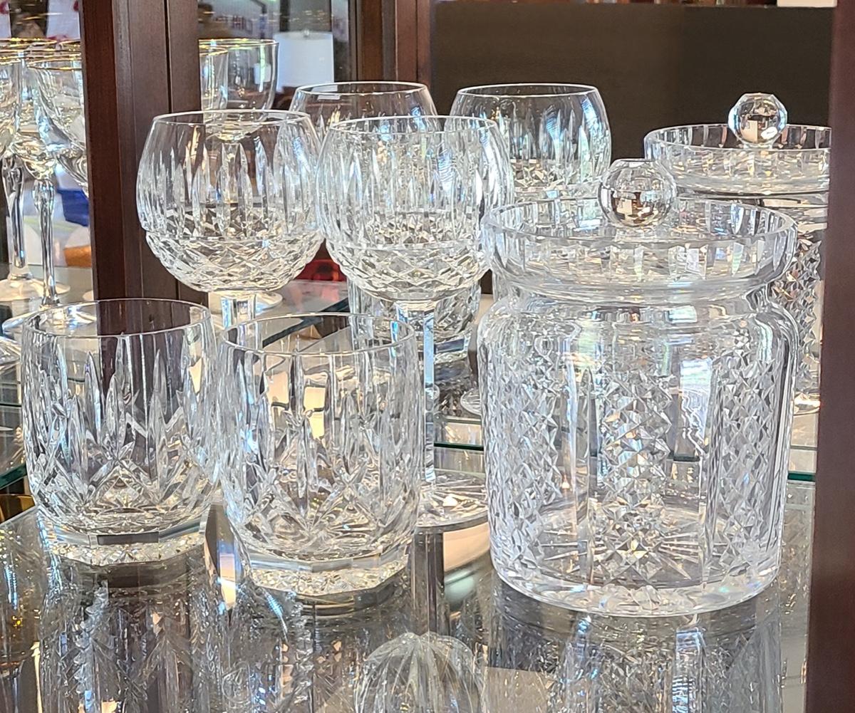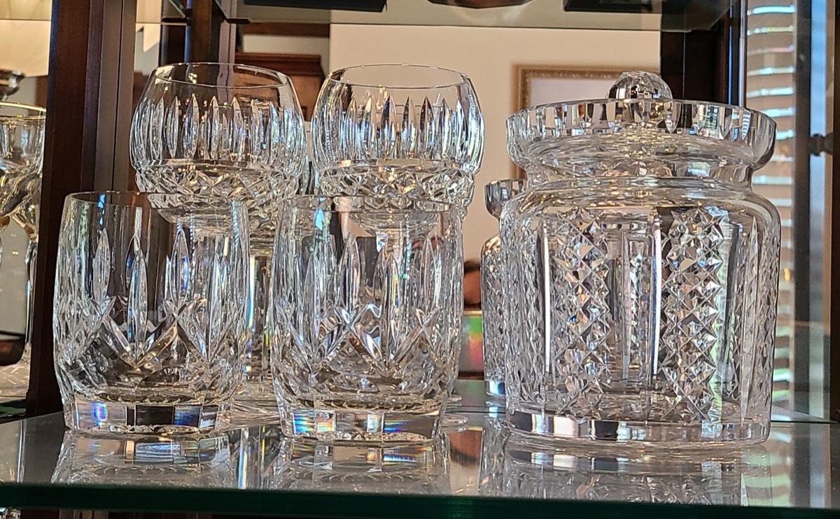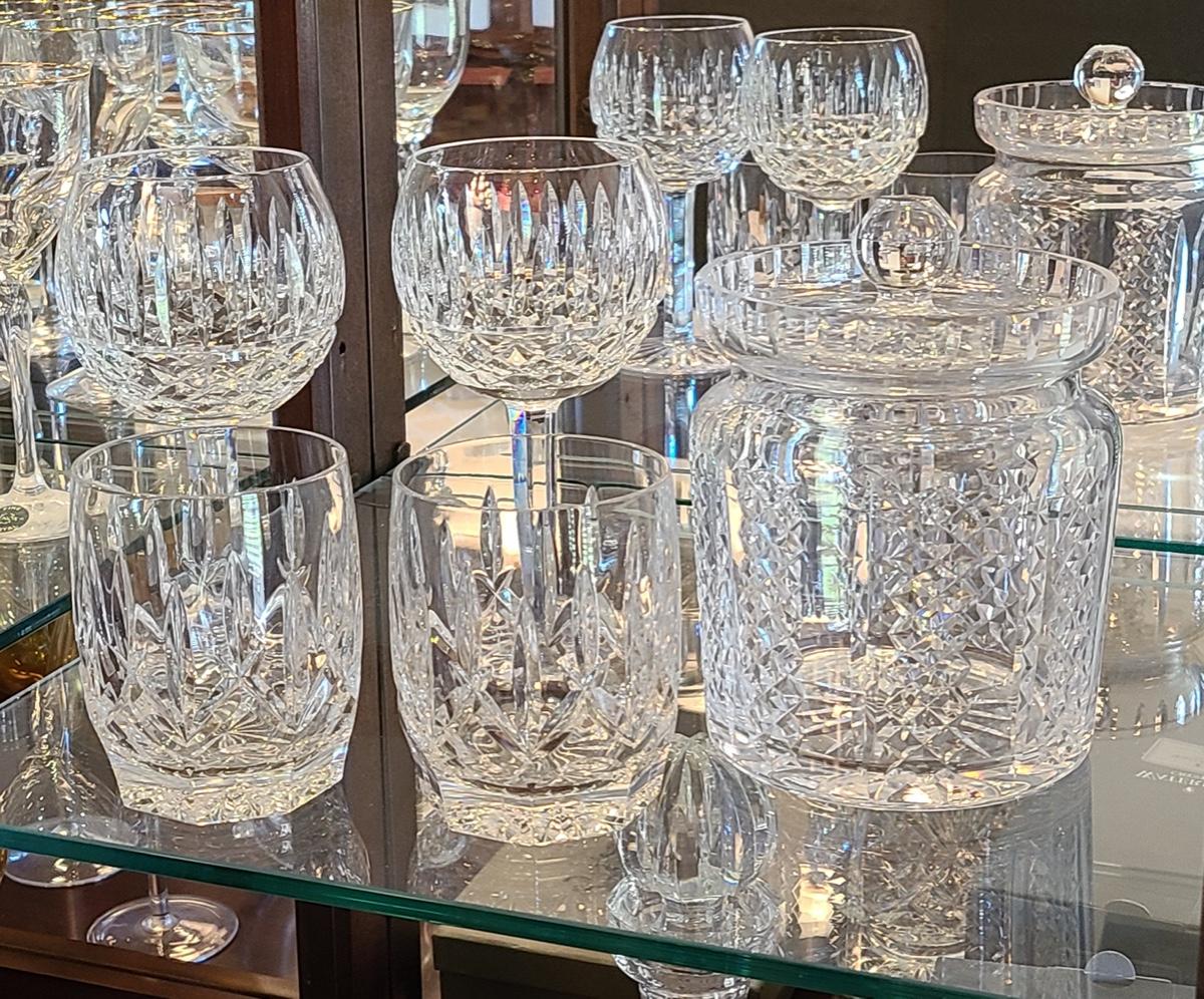 Lot 150: Waterford Hibernia Biscuit Jar, Wine Glasses, & More