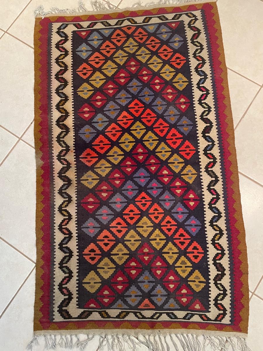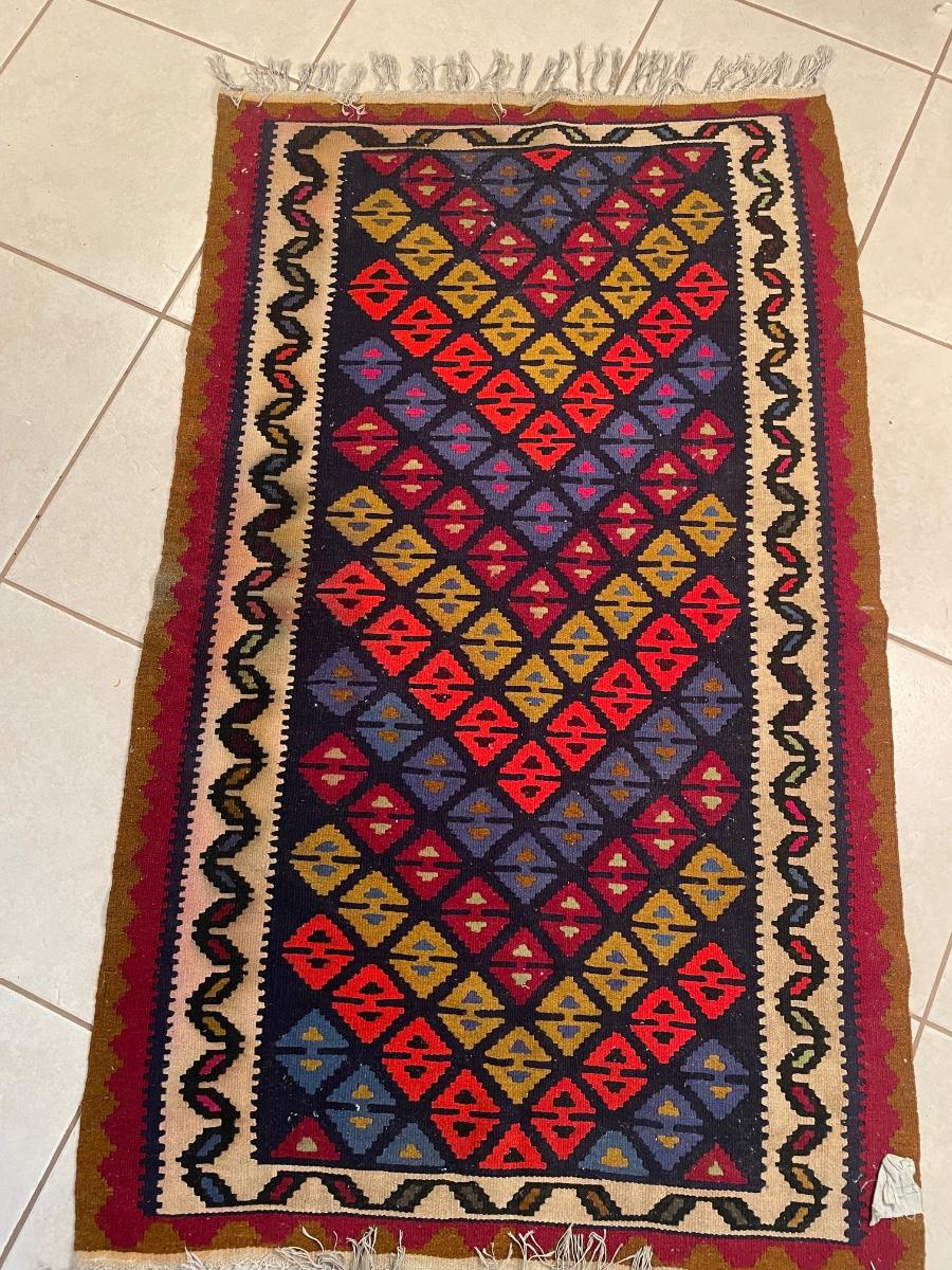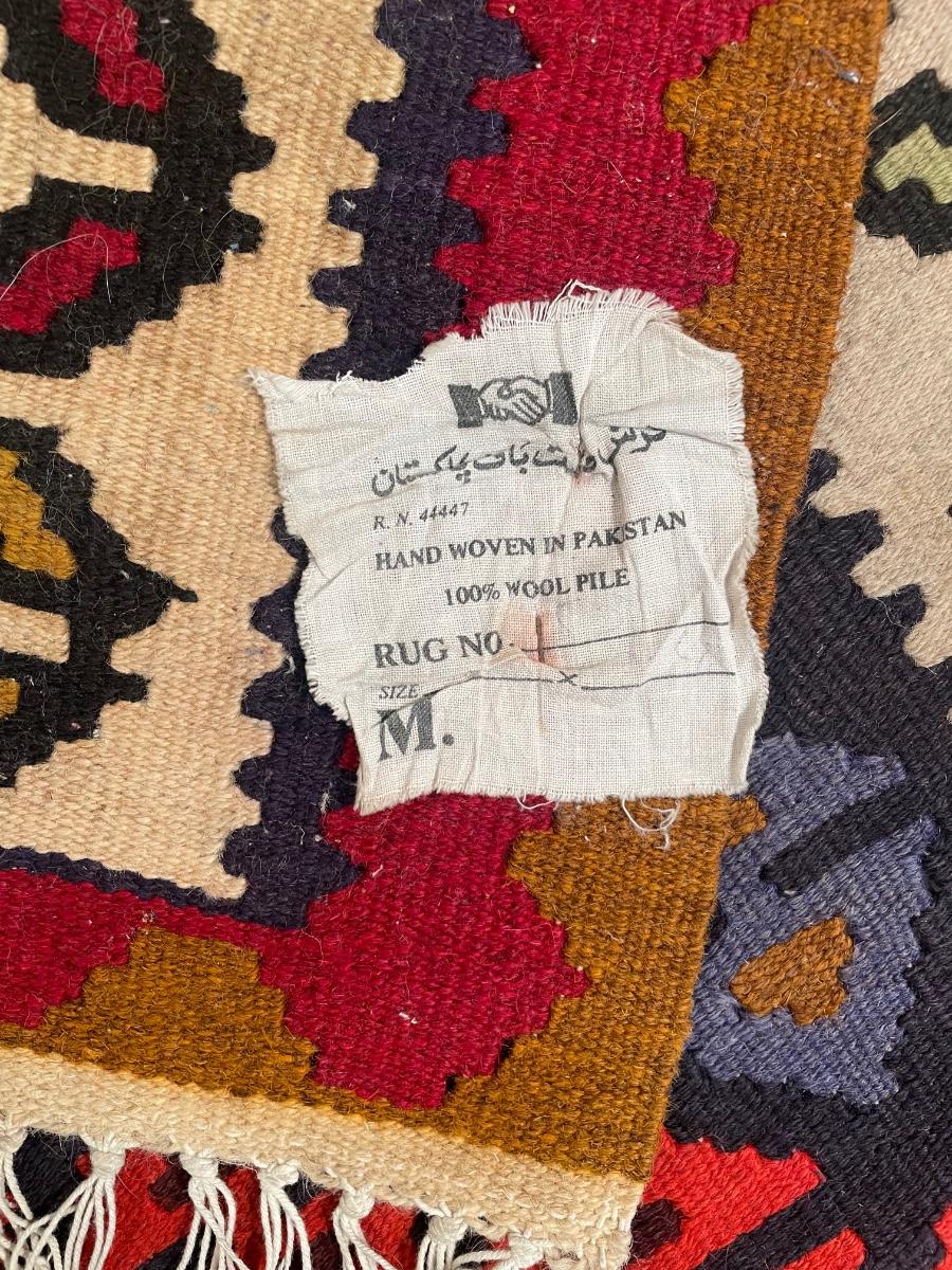 Made in Pakistan. 66" x 39". Needs to be cleaned but in good condition