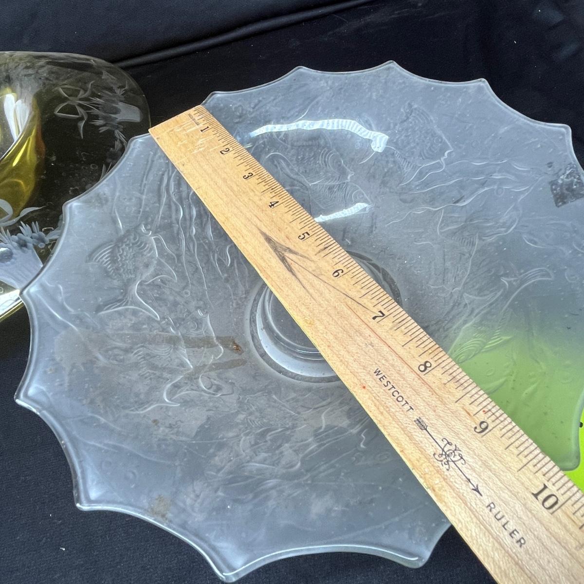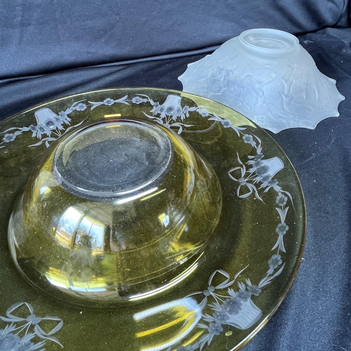 The rolled bowl with the basket design is very early Westmoreland. When they were just a decorating company. The fish bowl is Verlys! Both in great shape.