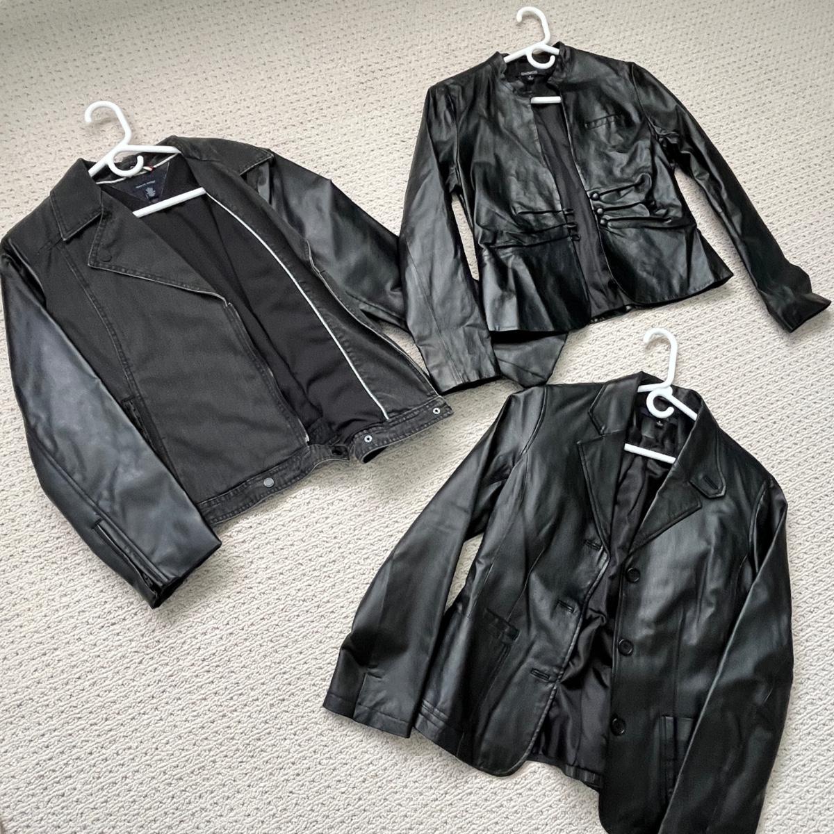 Lot 151 3 Women's black leather/pleather jackets (2 size 8, 1 XL)