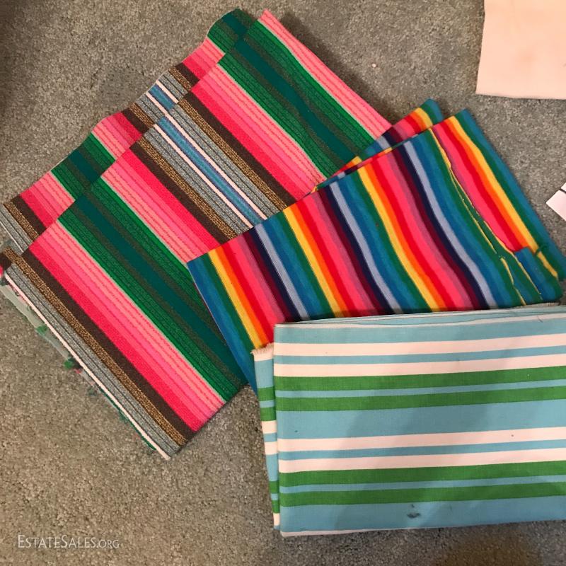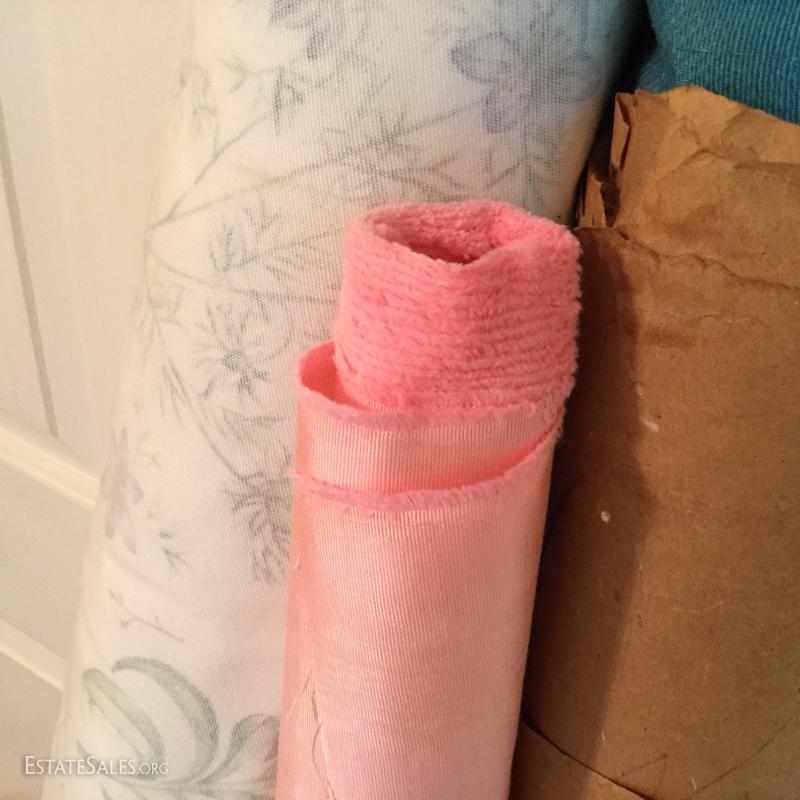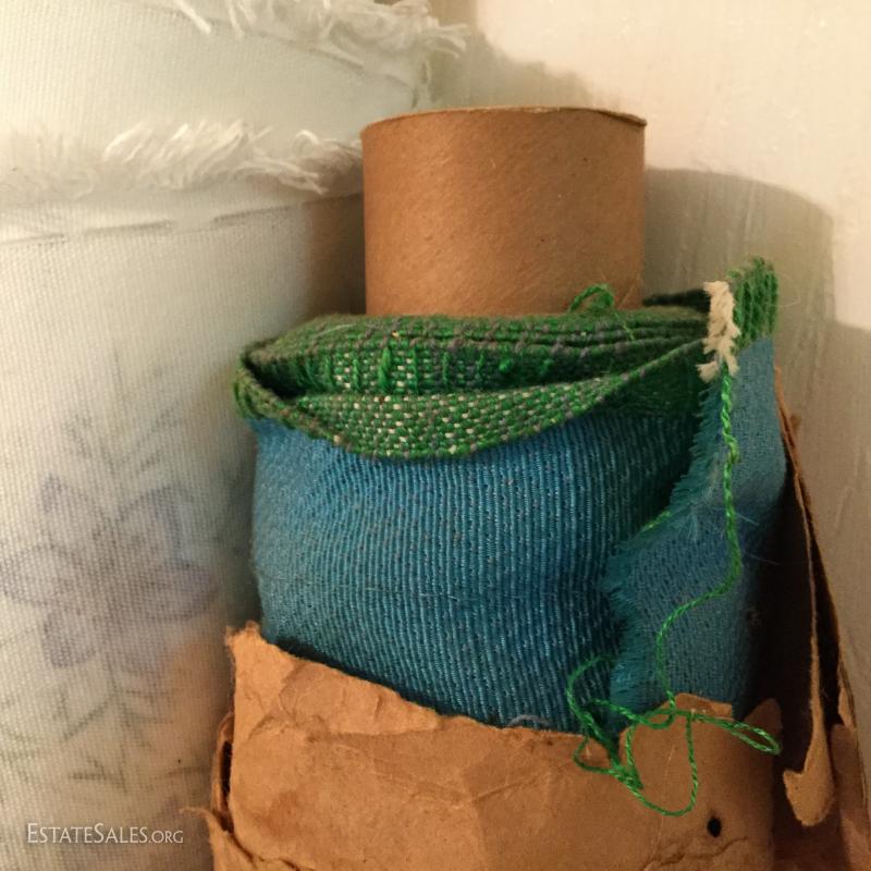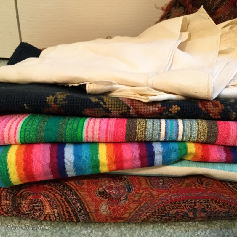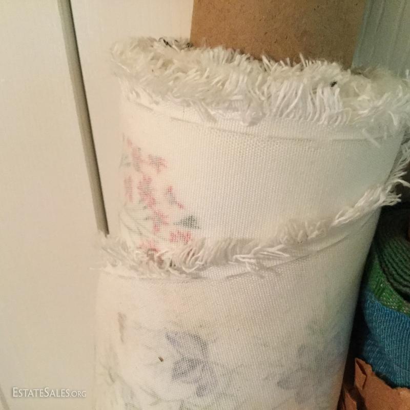 Three large rolls of fabric and several other misc. yards. Includes some great striped vintage pieces and needlepoint. You'll also find table linens and 3 yds of untouched lace. See photos for details. No Shipping. Only local pick up in Flat Rock, NC.