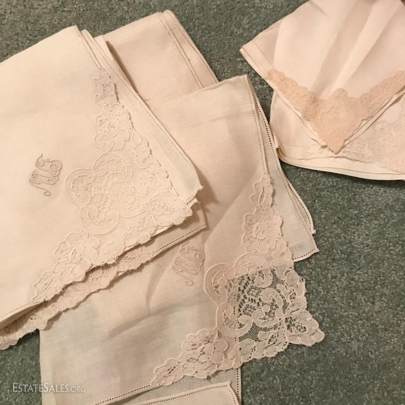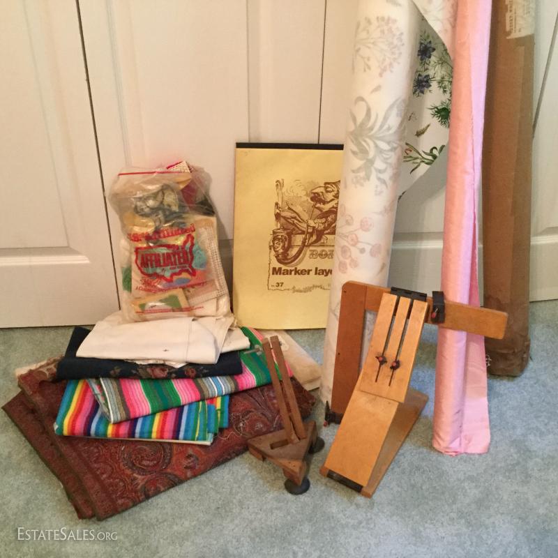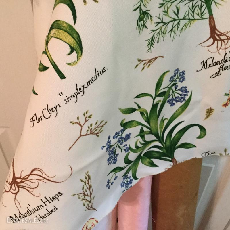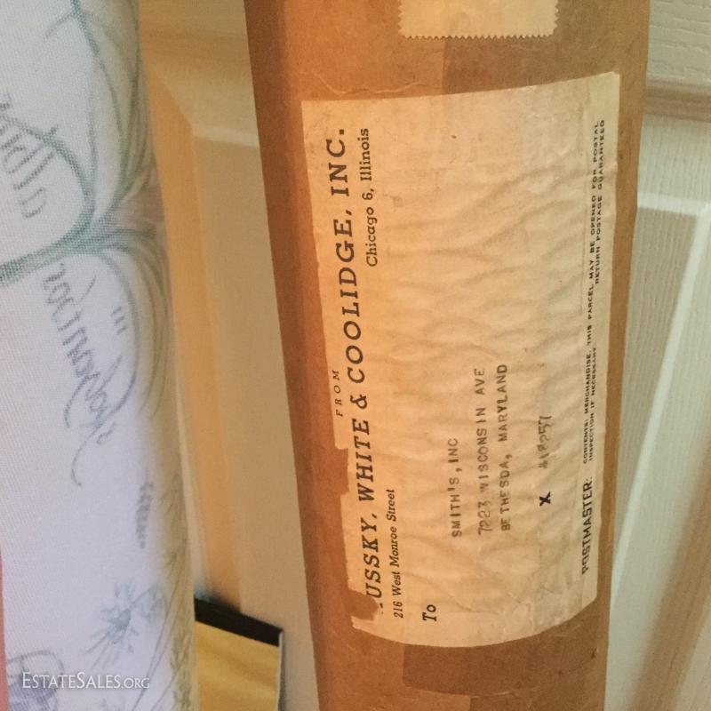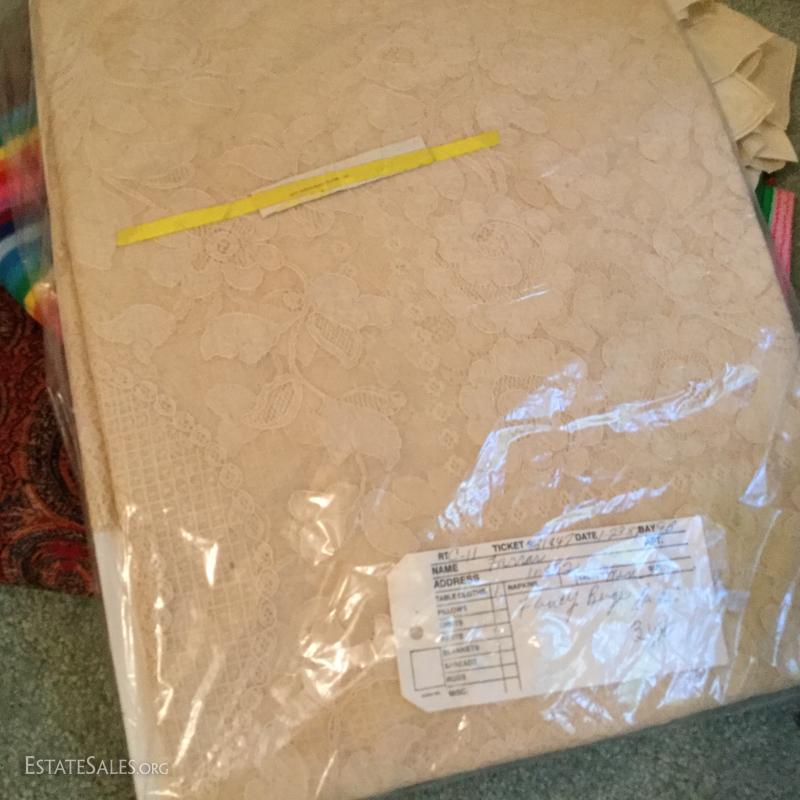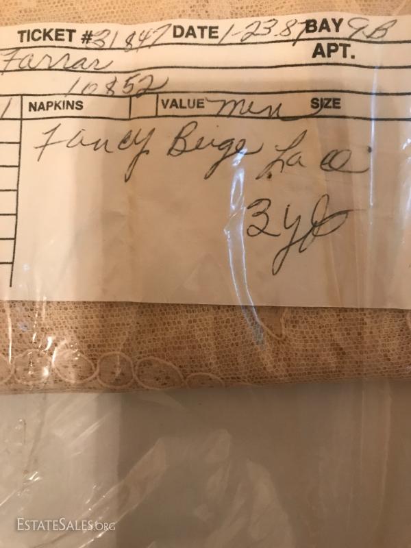 Three large rolls of fabric and several other misc. yards. Includes some great striped vintage pieces and needlepoint. You'll also find table linens and 3 yds of untouched lace. See photos for details. No Shipping. Only local pick up in Flat Rock, NC.