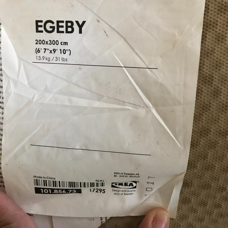 IKEA rug called “Egeby”. Made of flat woven natural fibre, sisal. Great durable rug. Measures 6’ 7” x 9’ 10”. Rug was rolled up so you can see bumps in pix. Those will smooth out. No Shipping. Local pick up only in Flat Rock, NC.