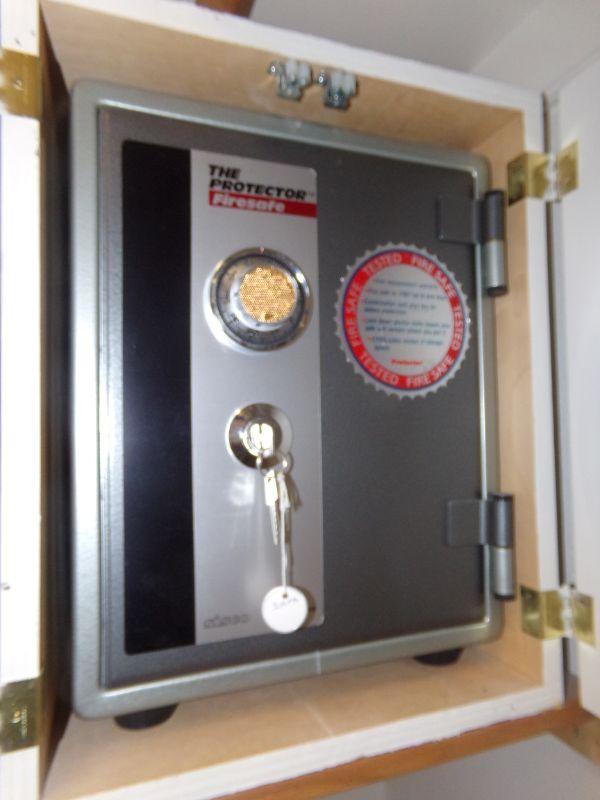 THE PROTECTOR FLOOR SAFE IS OPENED WITH A KEY AND OR COMBINATIONS APPROX 12"-14" WIDE. IT IS FIRE SAFE