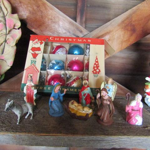 WREATHS, GARLANDS, NATIVITY SCENE, LIT TREE, VINTAGE GLASS TREE ORNAMENTS, CERAMIC LIGHTED TREE, ORNAMENTS AND MORE