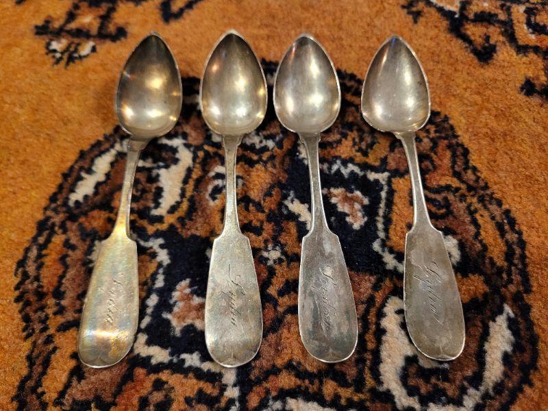 Lot #151: (4) Antique Late 1700's JOHN RICH Silver GrapefruitSpoons