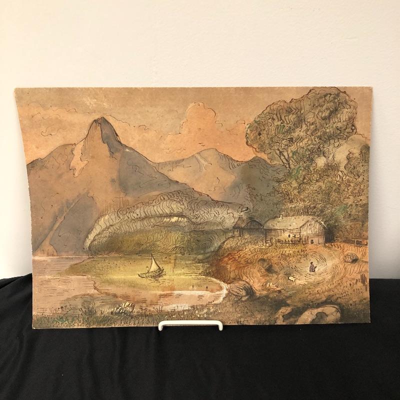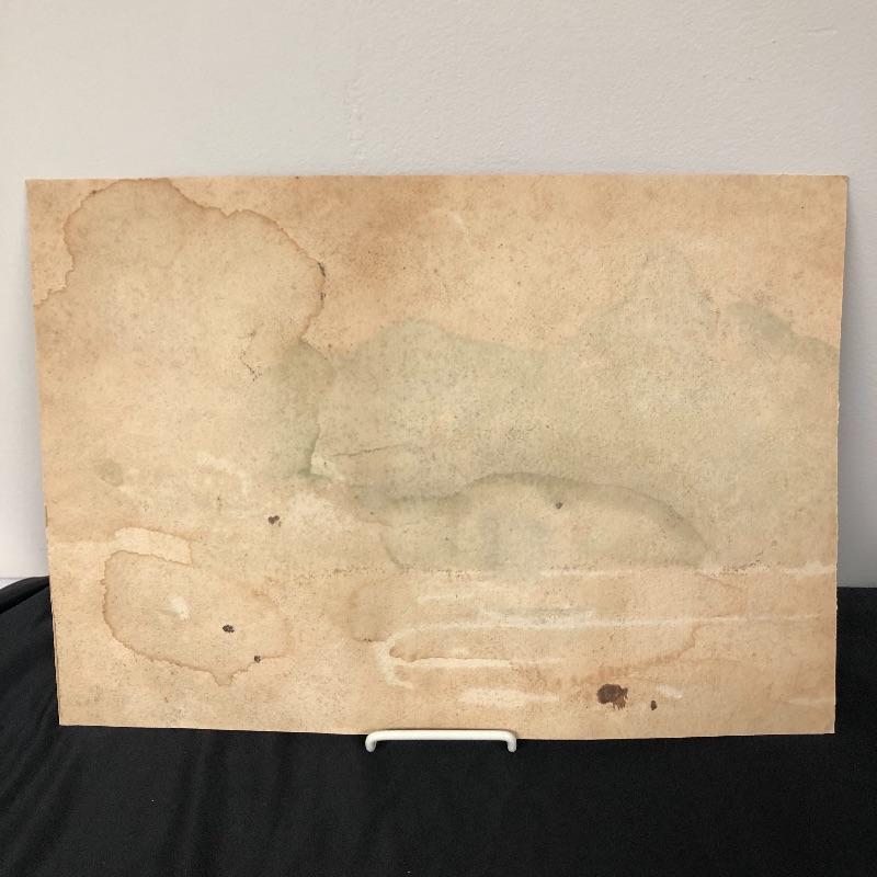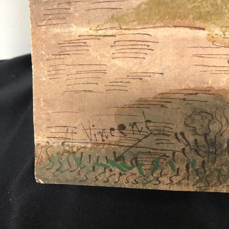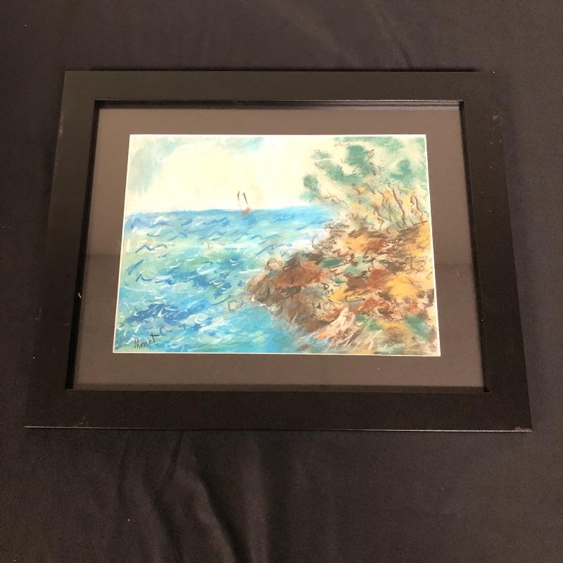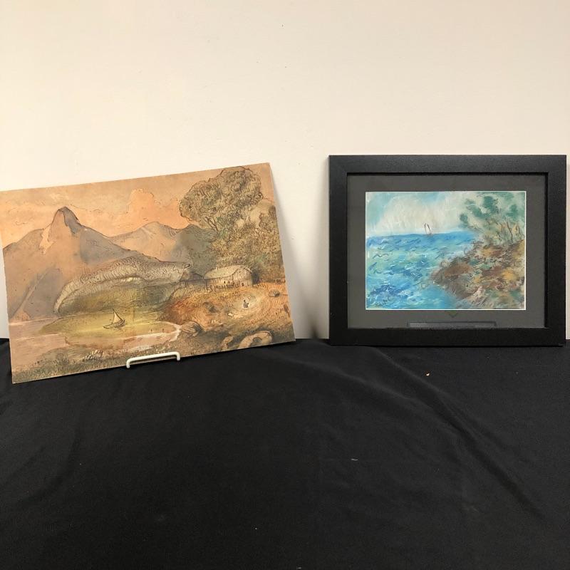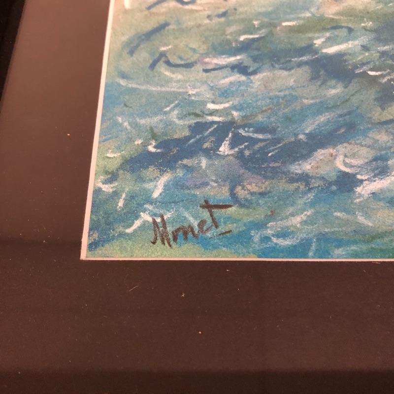 This lot includes a Van Gogh inspired piece (18” x 12.5”) that is not framed. It appears to be a watercolor is on paper. The second (16” x 13”) is a Monet inspired framed piece with a glass covering. Possibly done with pastels.