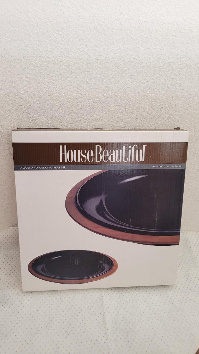Lot 151: New HOUSE BEAUTIFUL Large Wood and Ceramic Platter