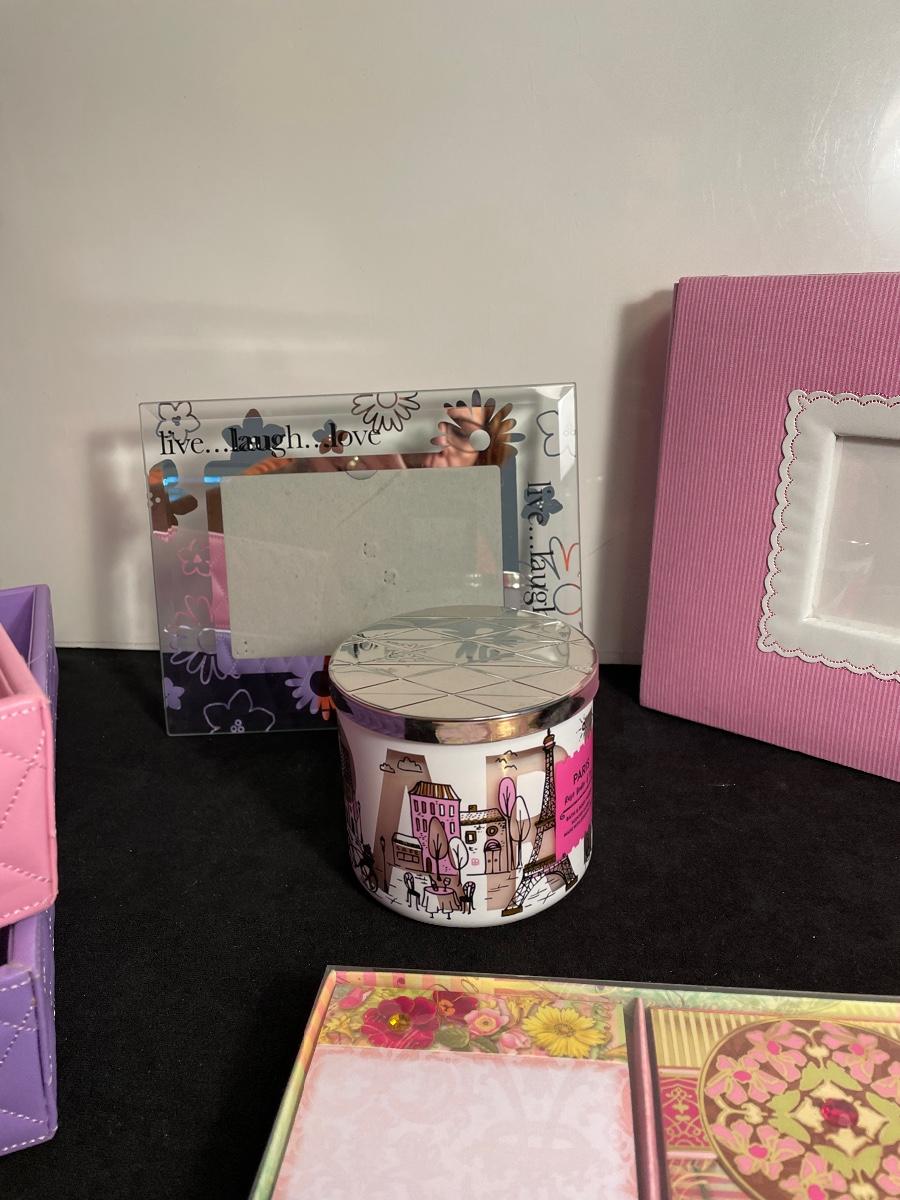 Lot 151 Pink and Purple Storage, Notecards, Candle and Frame