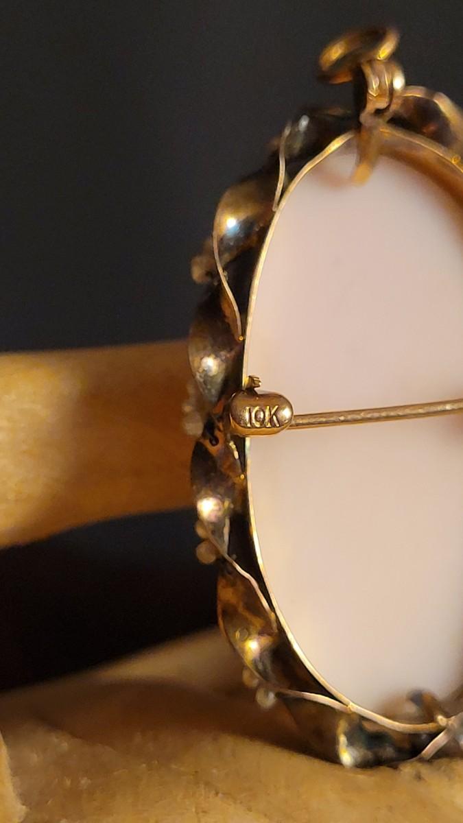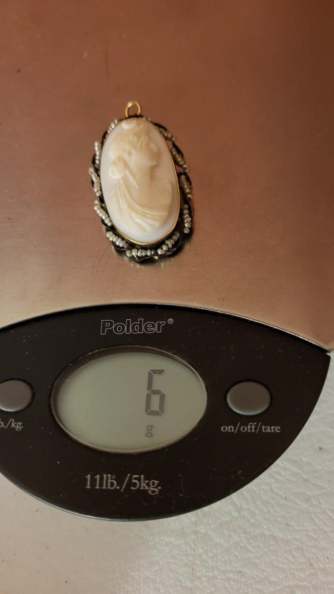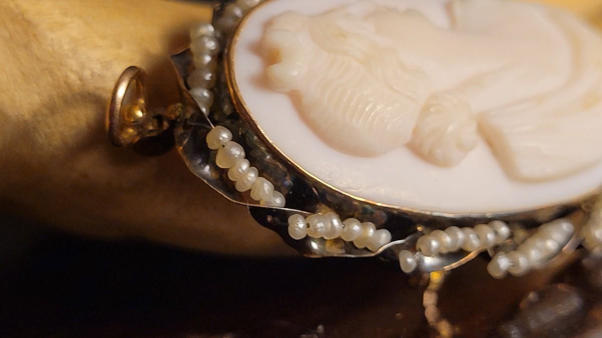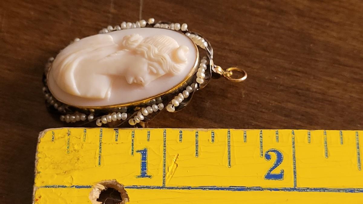 Lot 151: Antique 10k Yellow Gold Cameo w/ Small Pearl Accents Brooch Pin