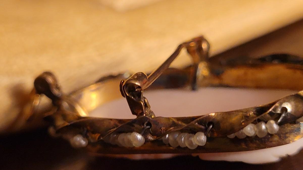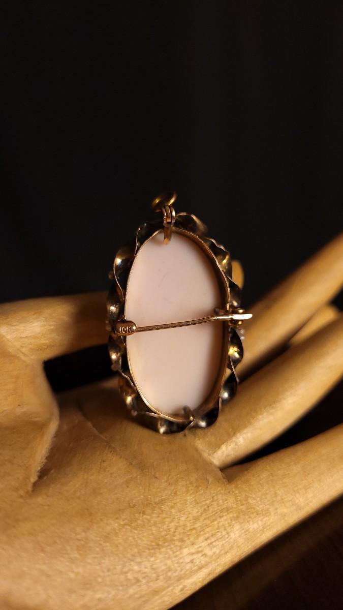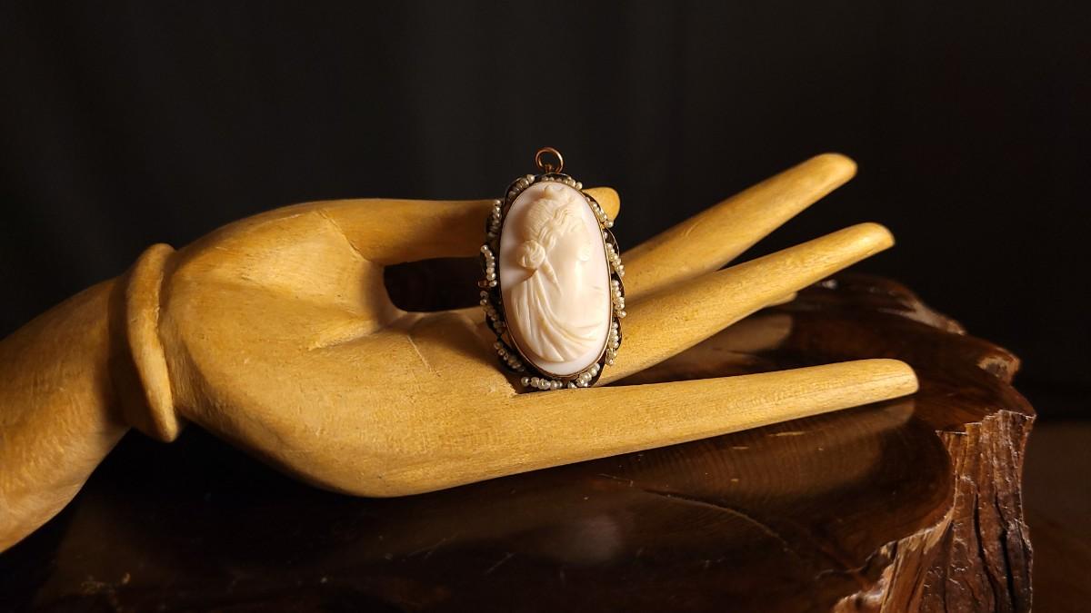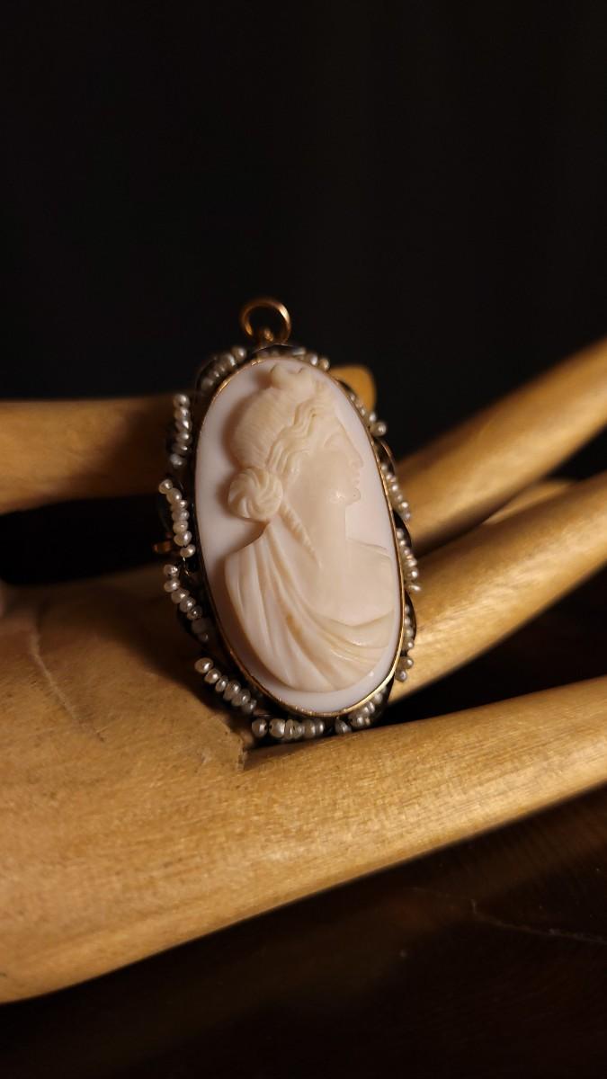 Lot 151: Antique 10k Yellow Gold Cameo w/ Small Pearl Accents Brooch Pin
