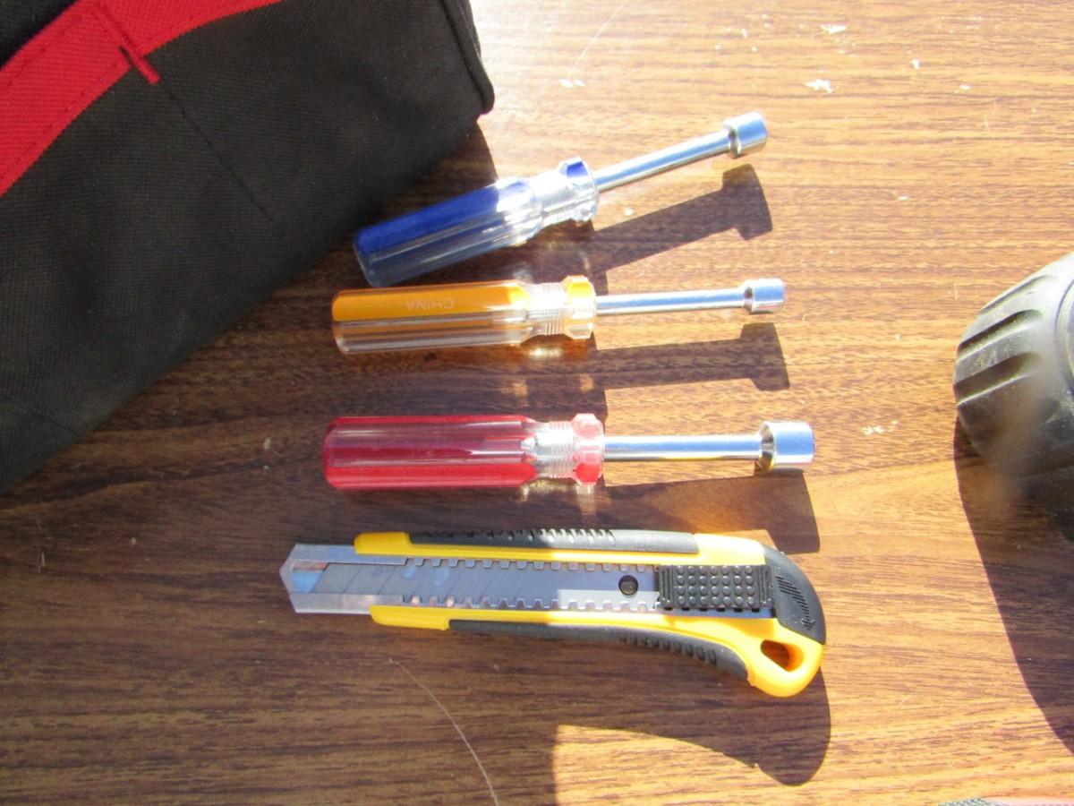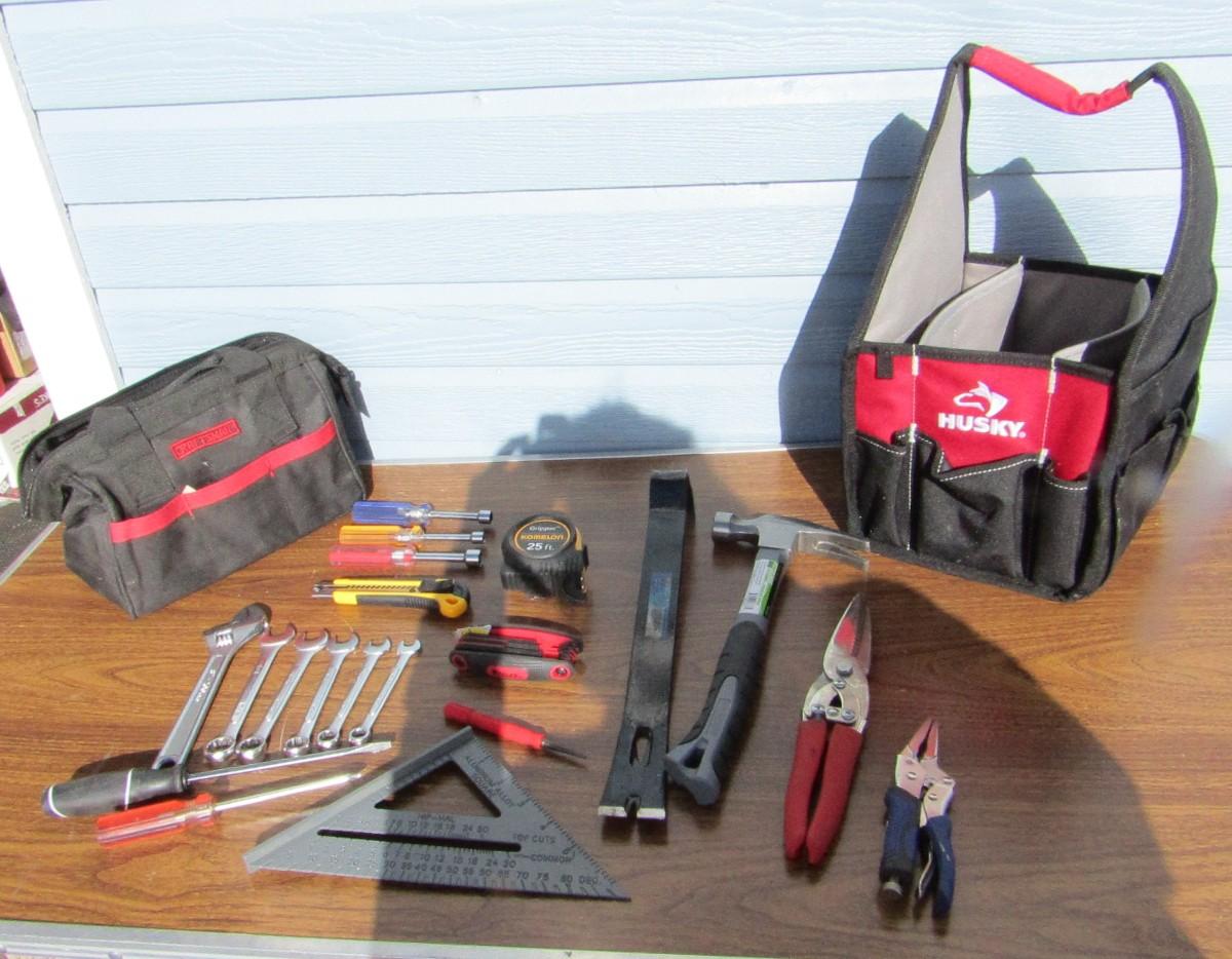 VARIETY OF HAND TOOLS AND S CANVAS TOOL BAGS