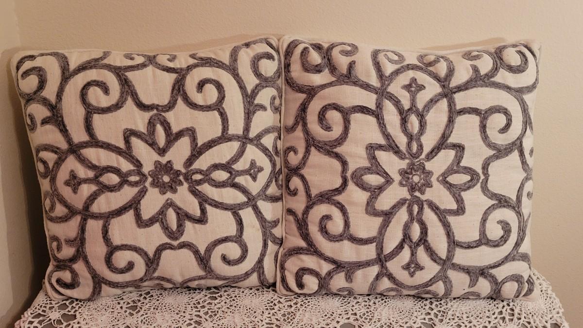 Lot 151: White with Gray Velvet Design Decorative Pillows