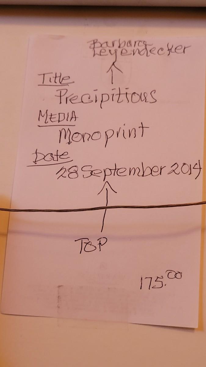 Lot 151: Original Monoprint Artwork by BARBARA LEYENDECKER 'Percipitious'