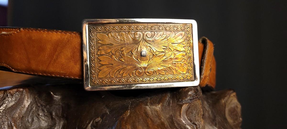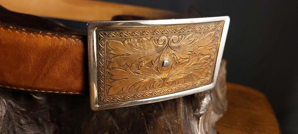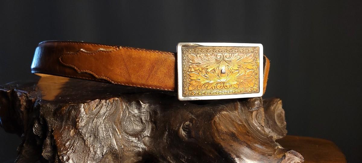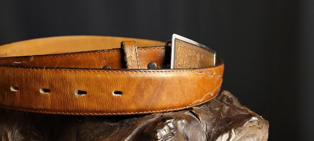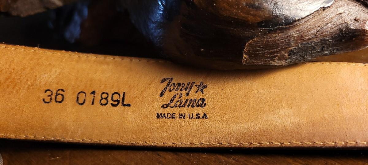 Lot 151: Vintage Metal Belt Buckle and TONY LAMA Leather Belt
