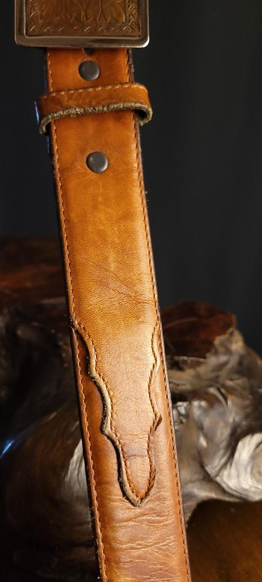 Vintage Belt Buckle with Tony Lama Size 36 Western Style Brown Leather Belt. Stylish combo that is ready to wear.