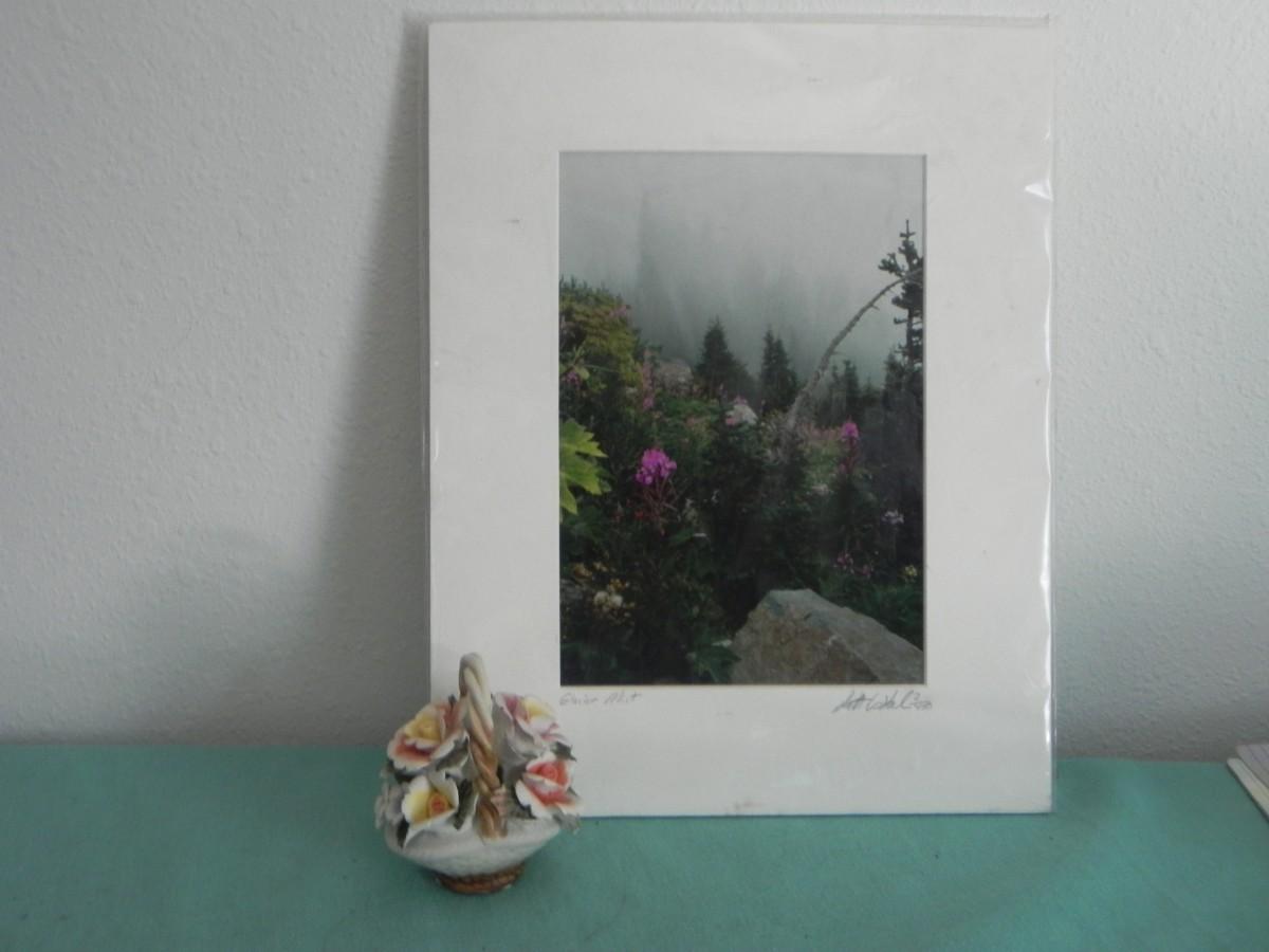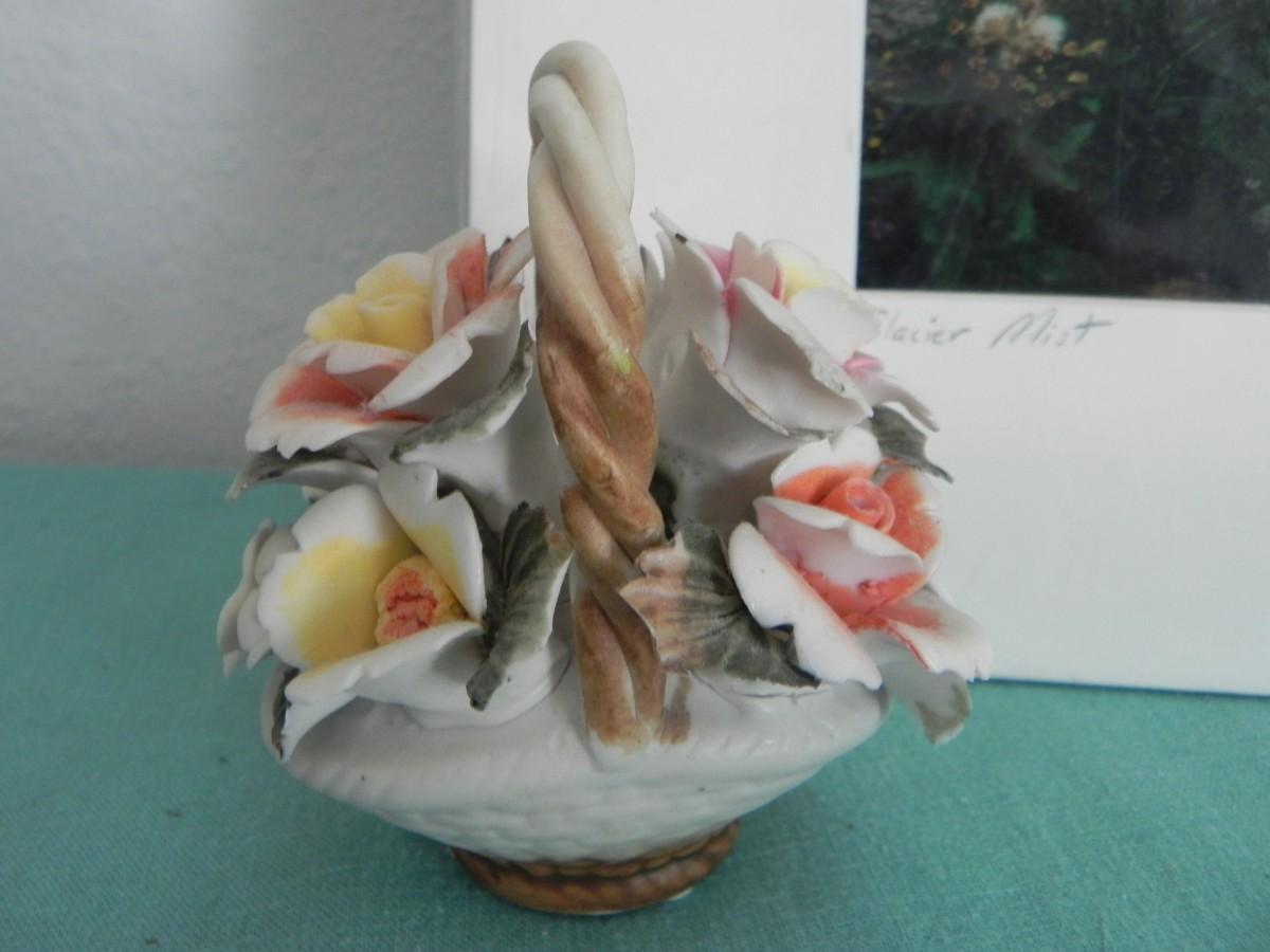 SIGNED PHOTO AND PORCELIAN FLOWERS