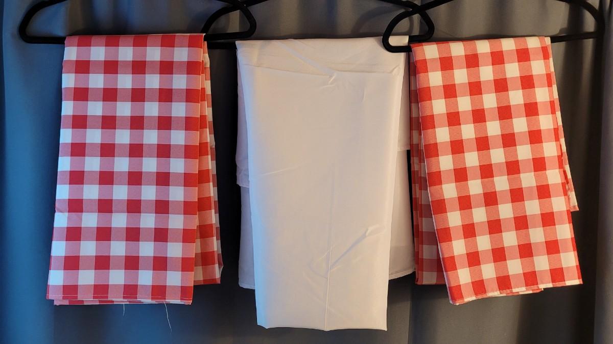 Lot 151: (2) Red & White Checkered Tablecloths and a White Tablecloth
