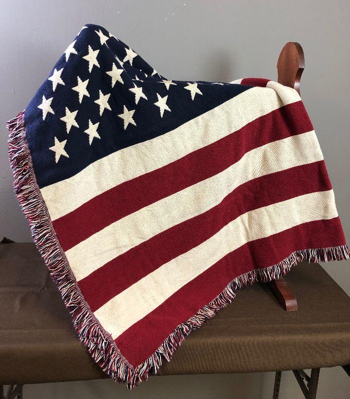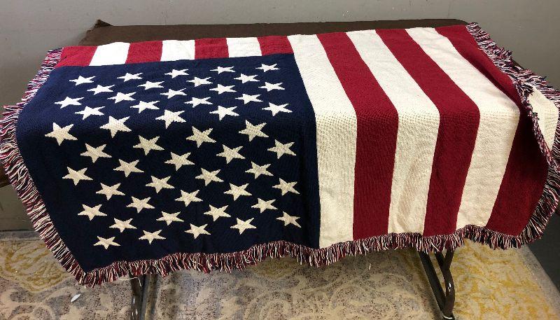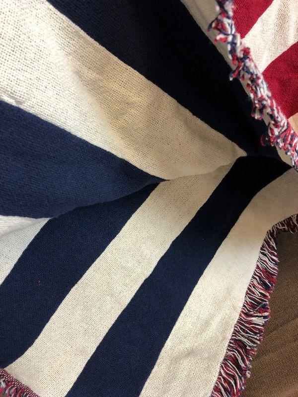 Excellent Condition, clean with Fringe. 46 x 66. You can cuddle with your country all day long.