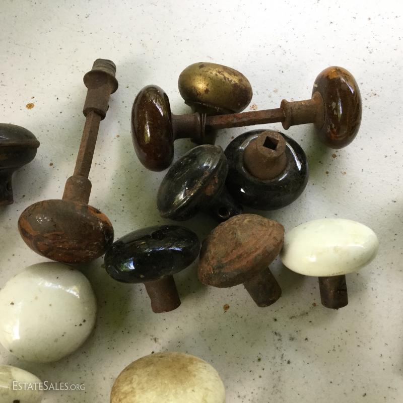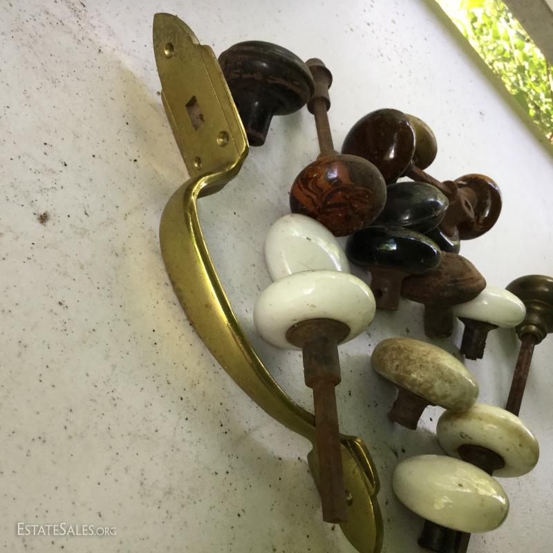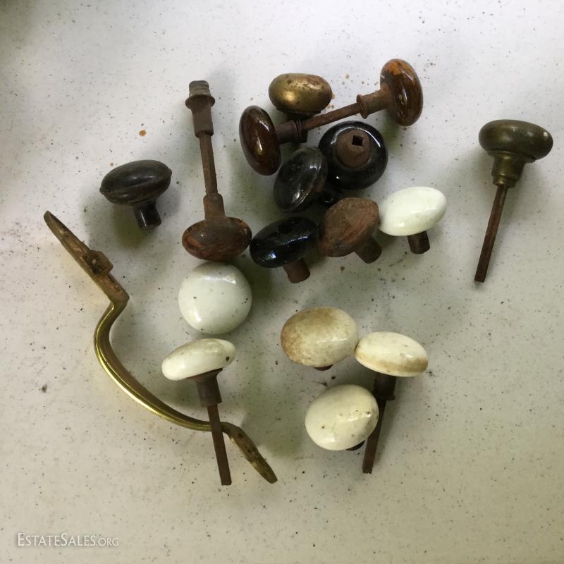 Lot of Antique door knobs and one brass hand pull. Shipping or Local pick up in Saluda, NC