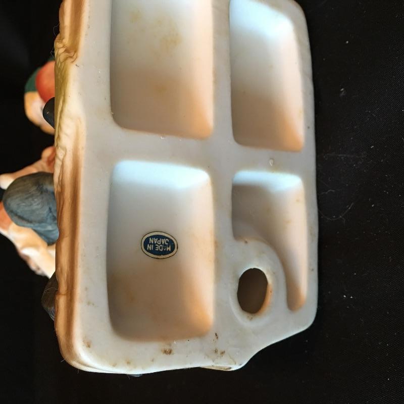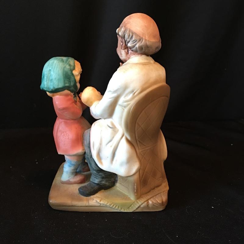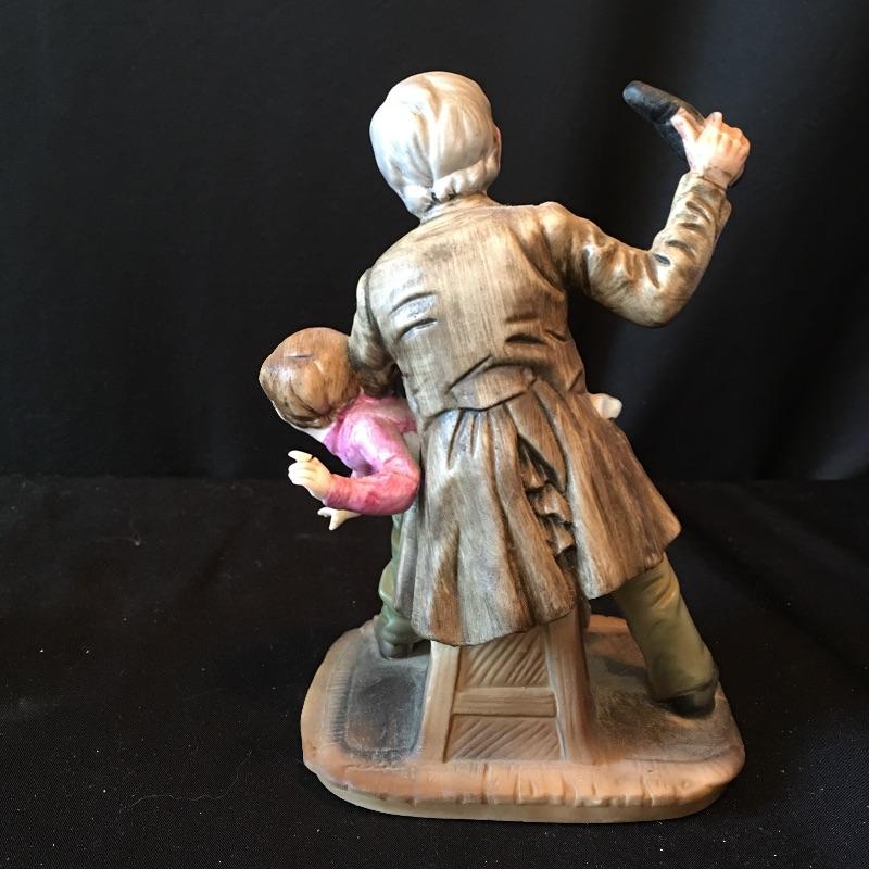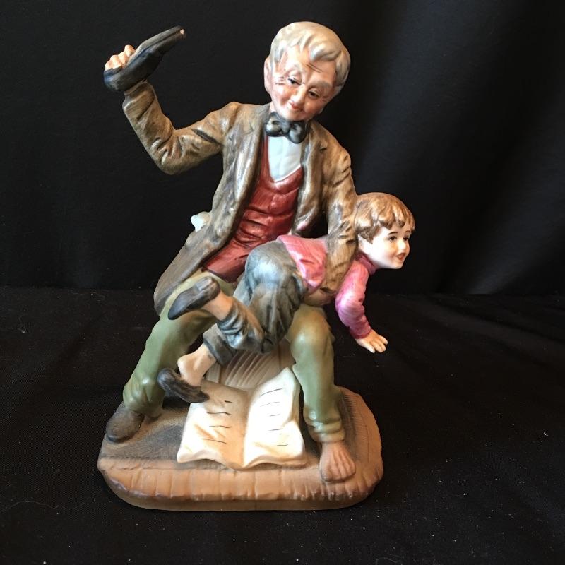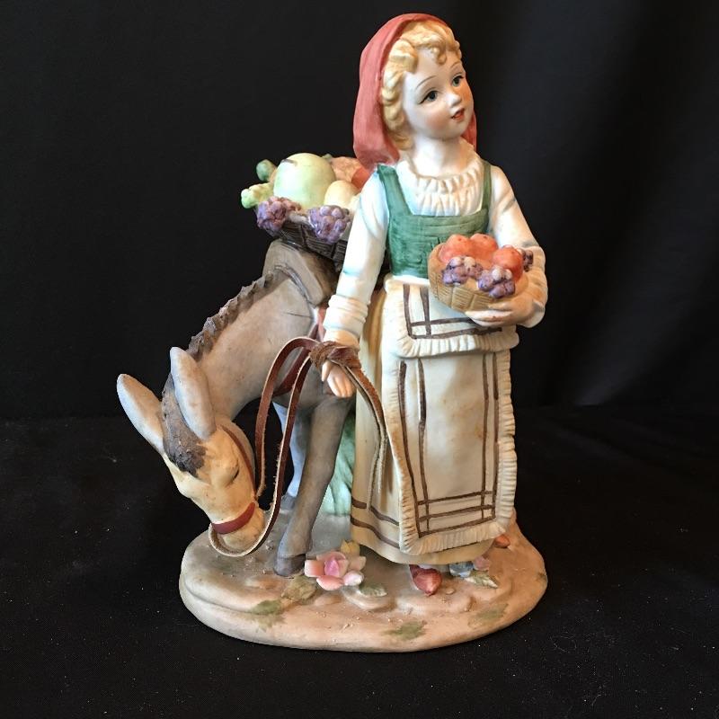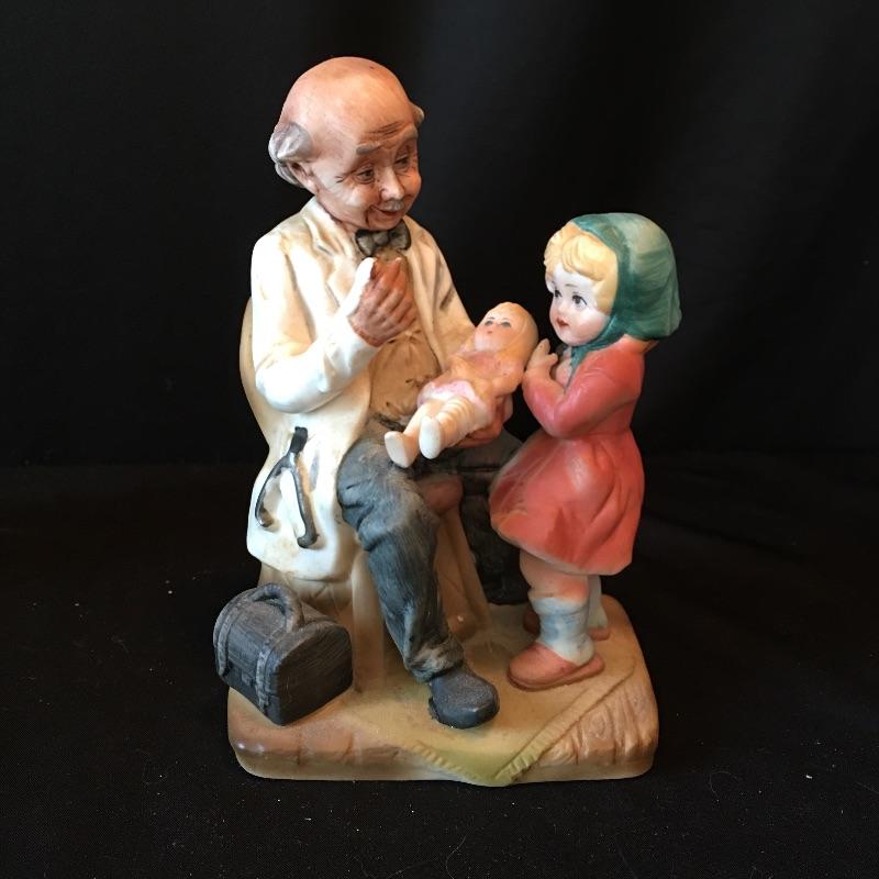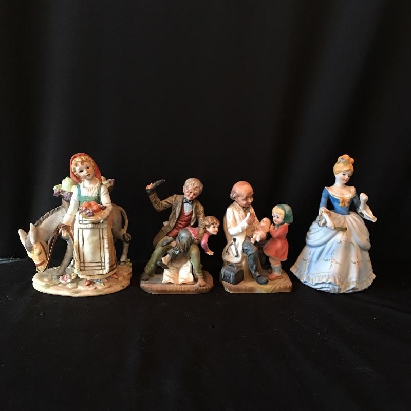 Lovely Ardalt Linwile china figurine of a lady and her donkey, a figurine of a Dr tending to a doll, a figurine of a father spanking his child, both are marked made in Japan. There is also an unmarked figurine of a lovely lady in a blue dress. Ardalt Linwile figurine measures 4.5” x 5.5” x 8”.