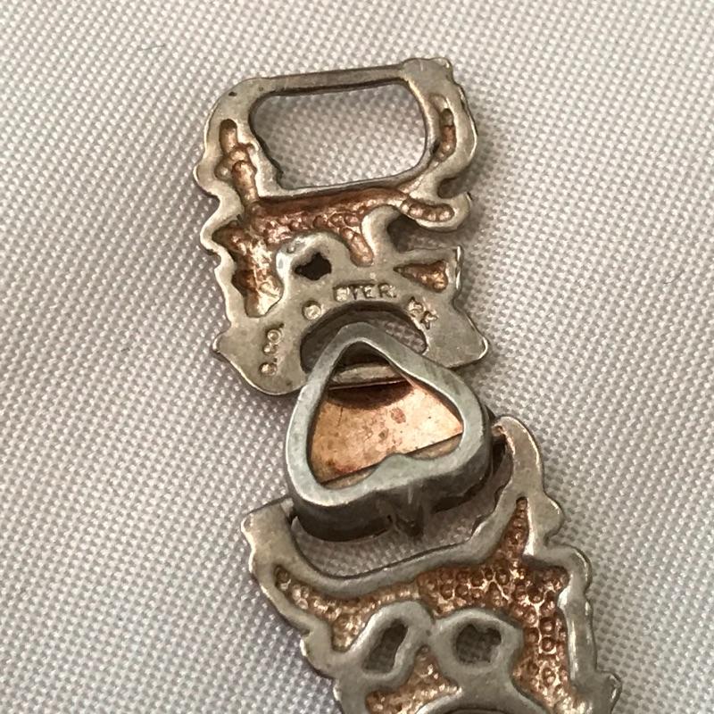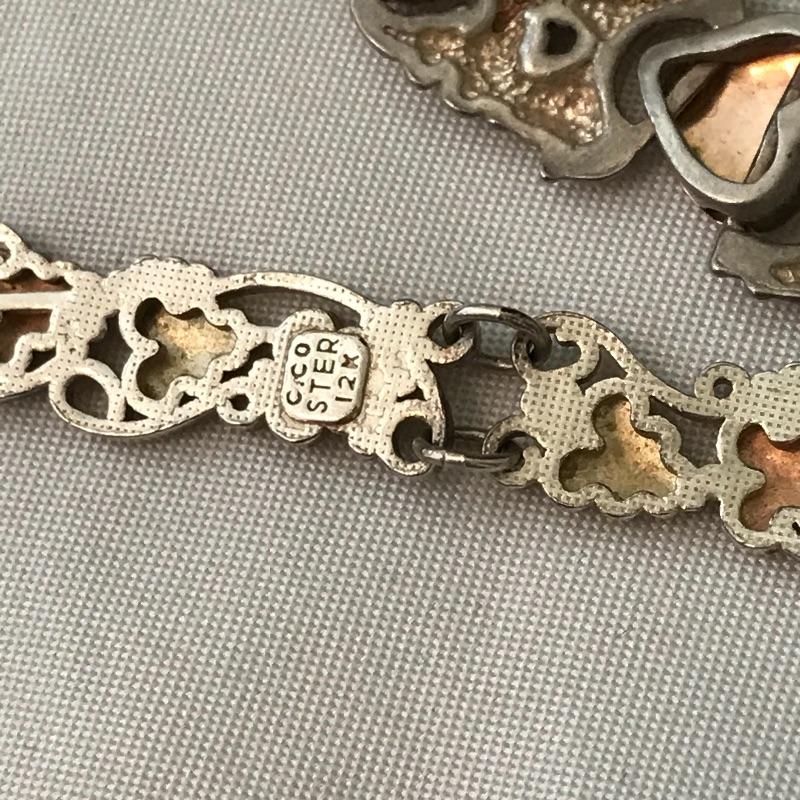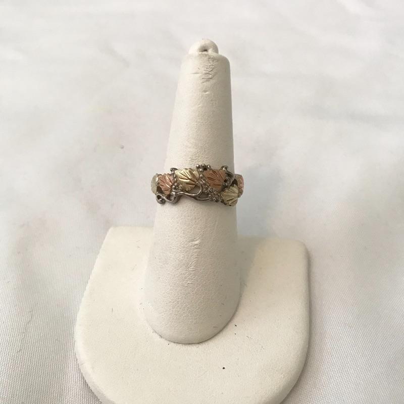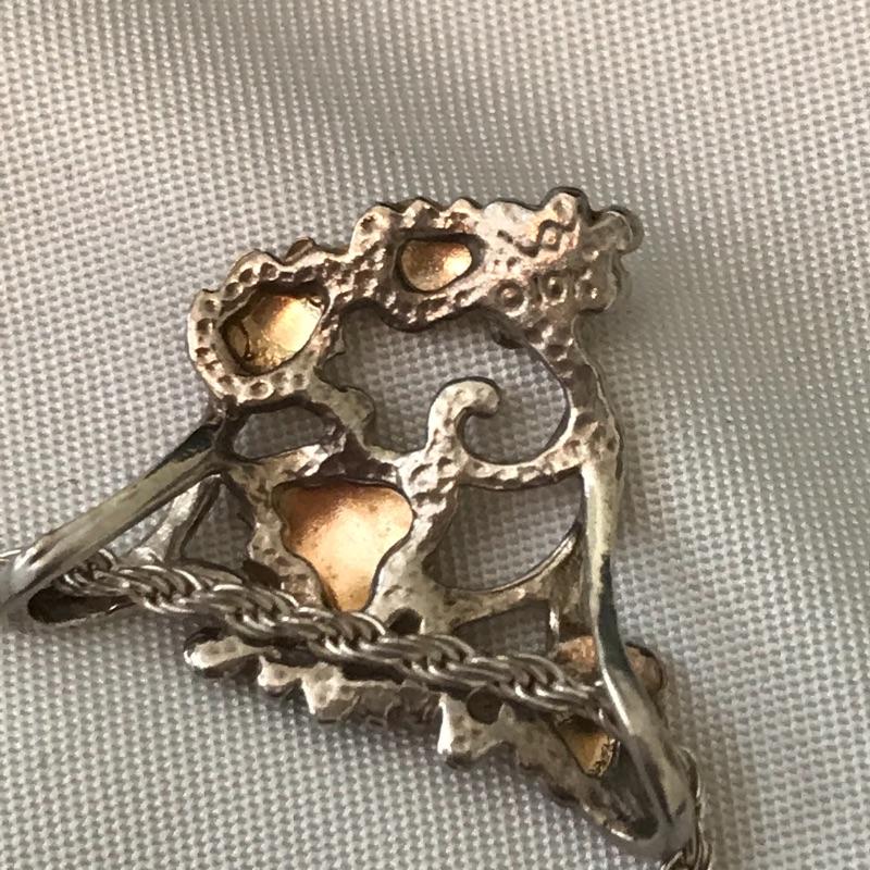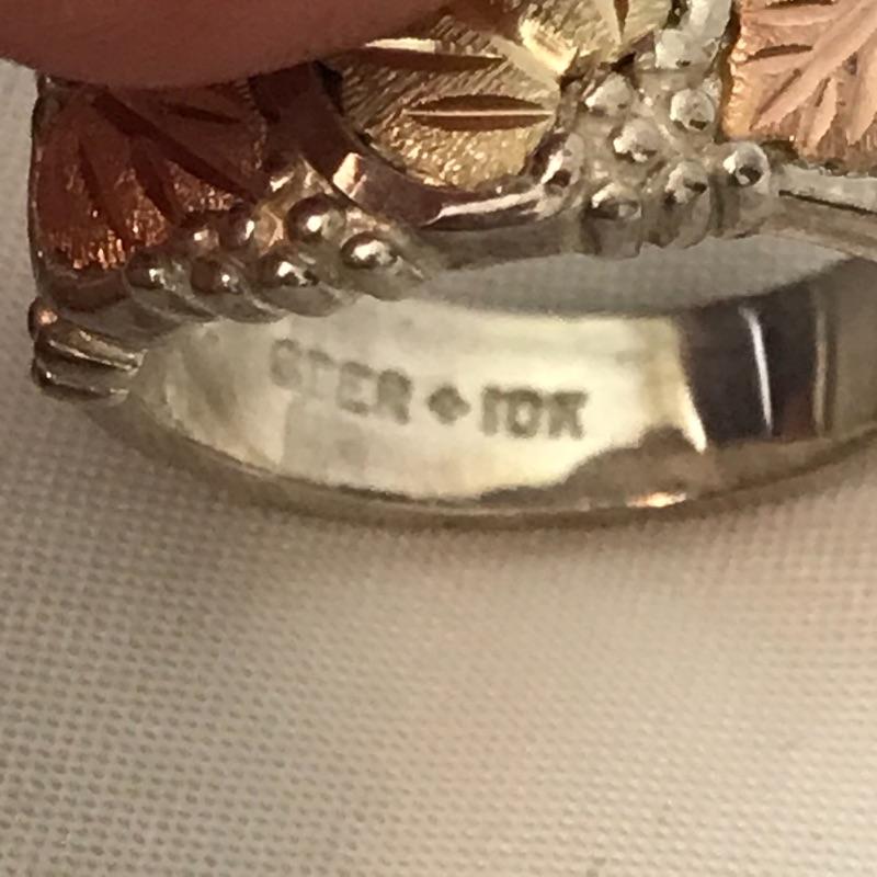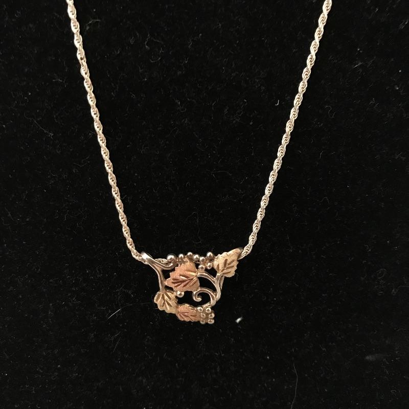 Grapes, leaves and precious metals! There’s something so captivating about the designs and colors. Includes 3 rings, 2 bracelets and a necklace. These pieces will go well with most other jewelry, gold or silver colored and more! All pieces have a mix of gold (either 10K or 12K marks) and sterling/925, see photos for markings and ring sizes. The pendant can be removed from the chain, also marked 925. Shipping available.