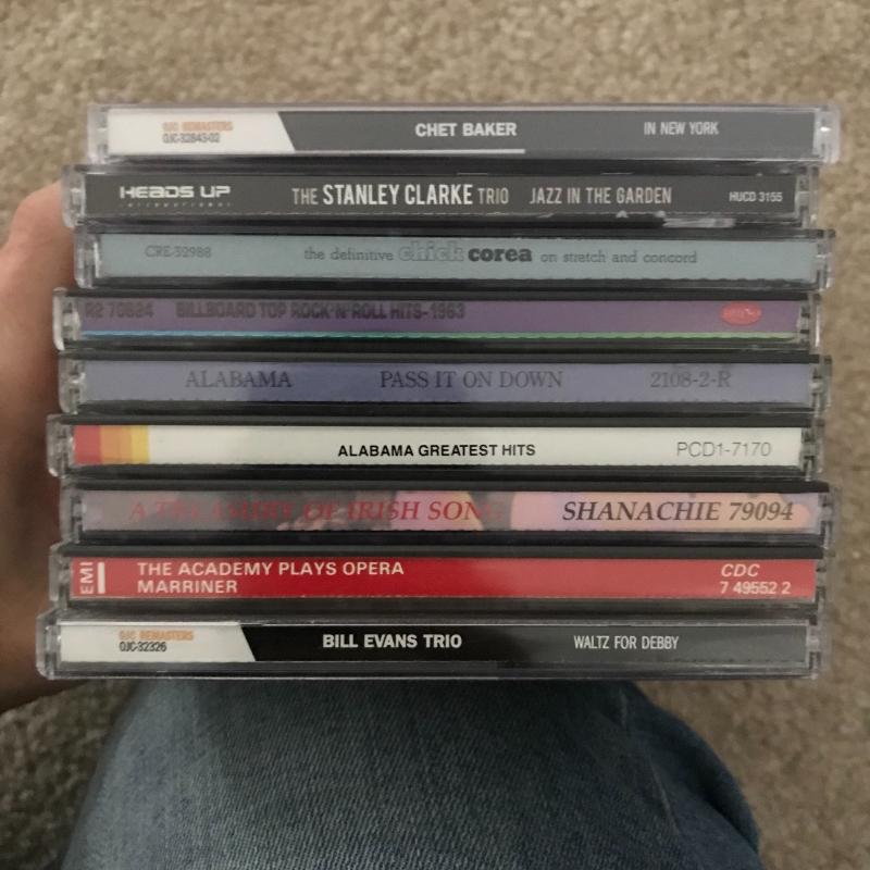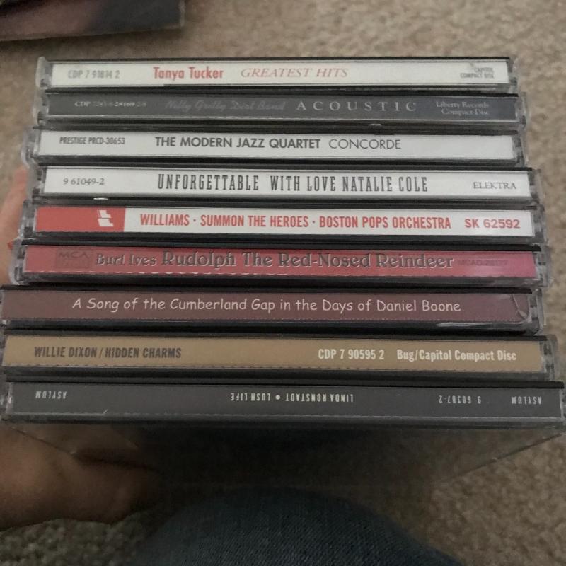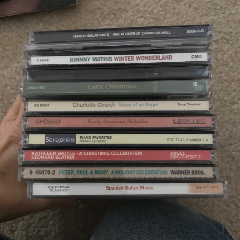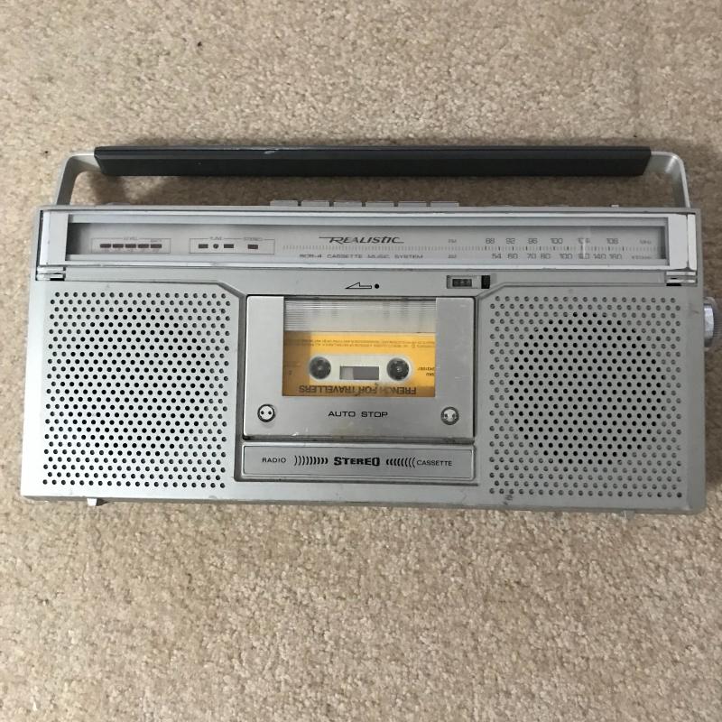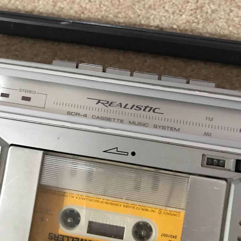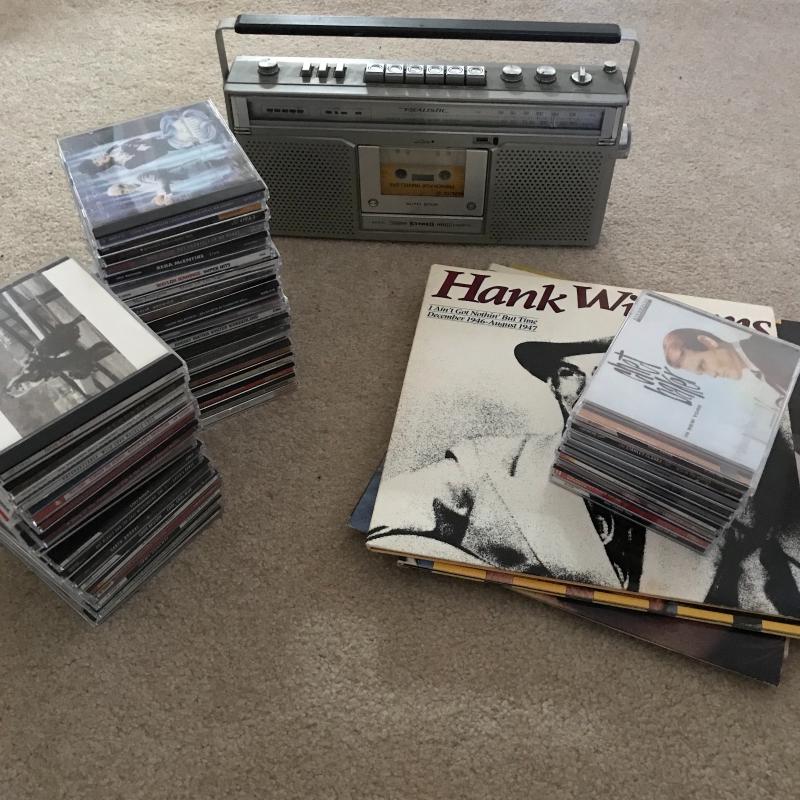 This lot includes dozens of CDs (see pics for details), six records (see pics), and a vintage “Realistic” brand radio/cassette tape player. Cannot verify functionality of electronics or condition of CDs and records.