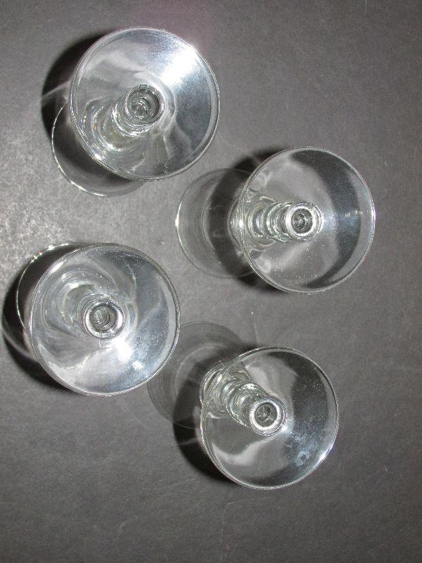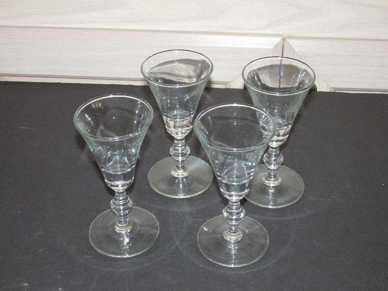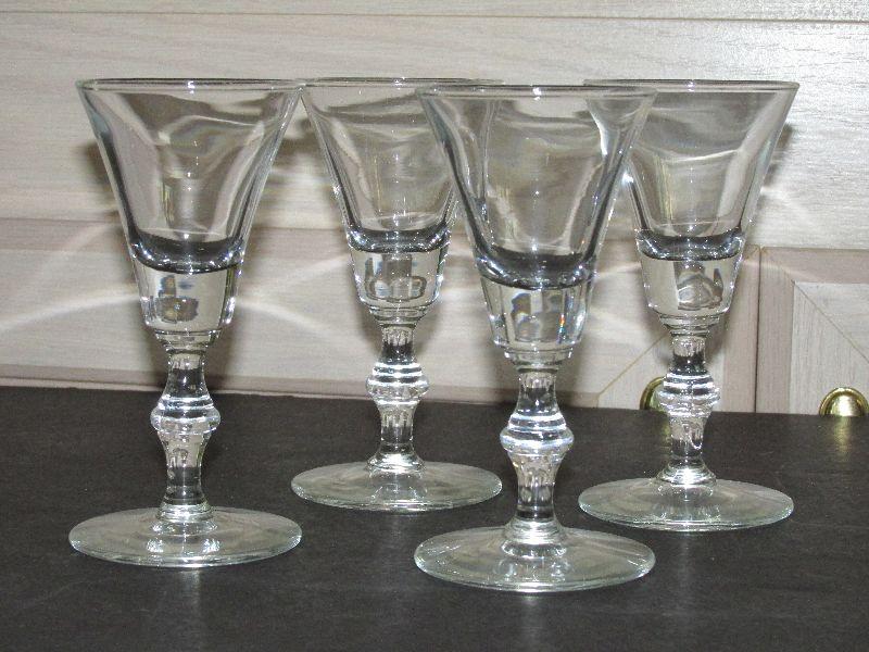 Clear Pressed Glass Wine Glasses. Height 4 7/8" Width: 2 3/8". No chips or cracks. Not sure on maker.