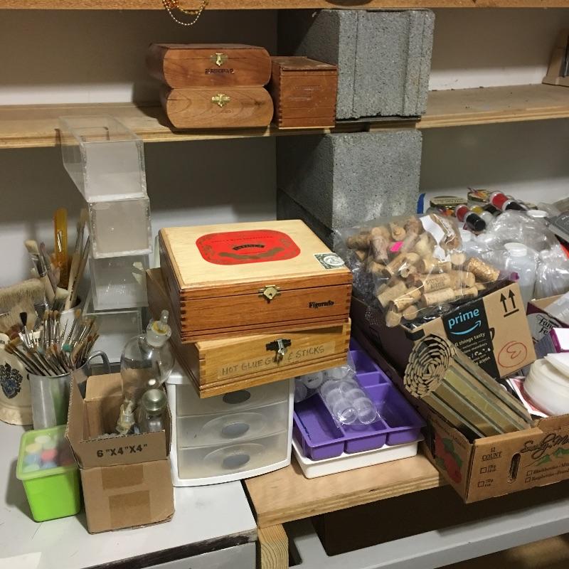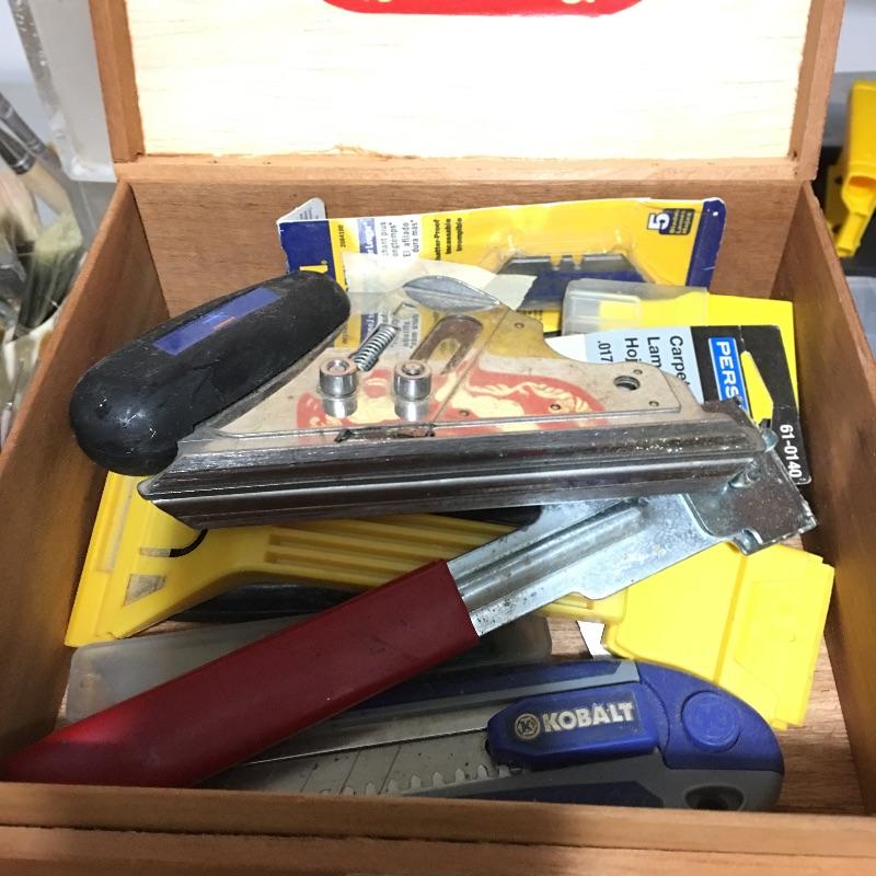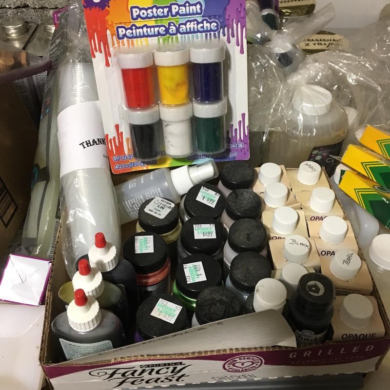 Craft lot. Large assortment of crafting essentials including paints, dye, Glue gun, cutters, paint brushes, storage boxes and more.
