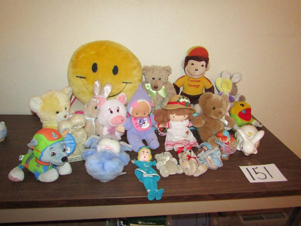 LOT 151 CURIOUS GEORGE, STRAWBERRY SHORTCAKE, ROCKY AND MORE PLUS ANIMALS