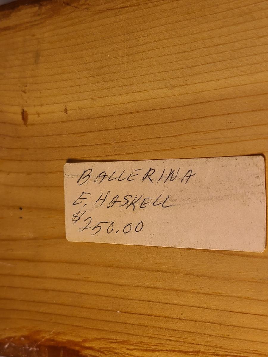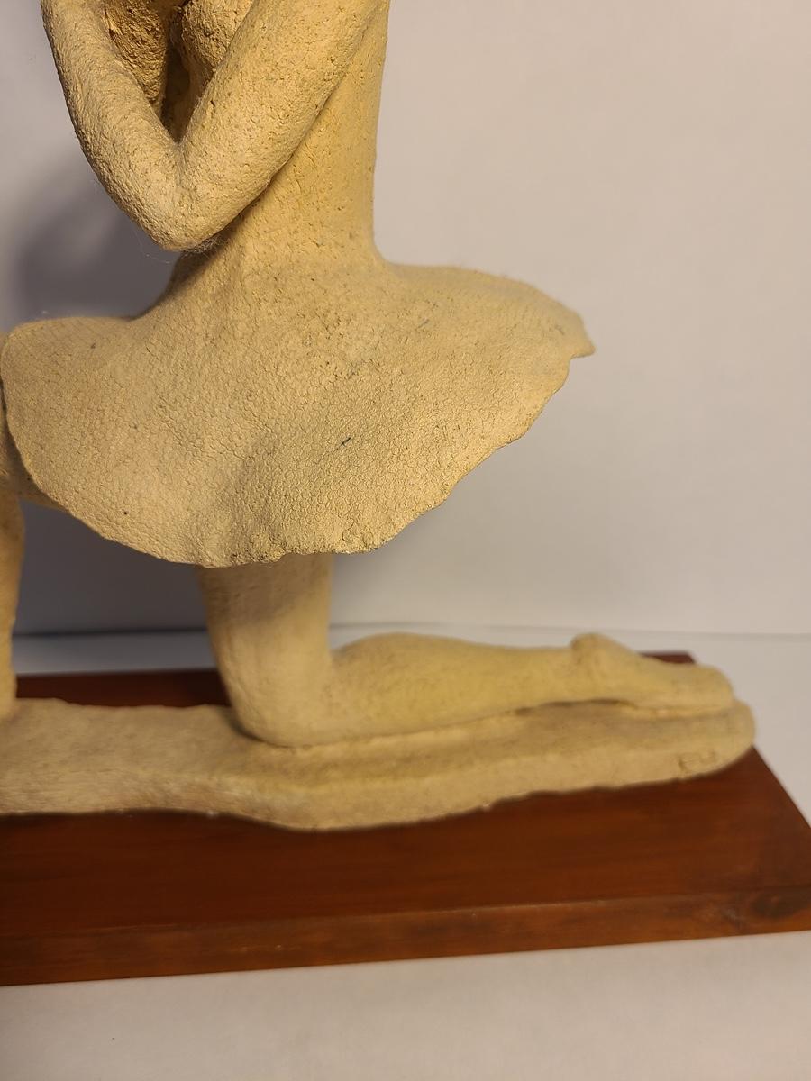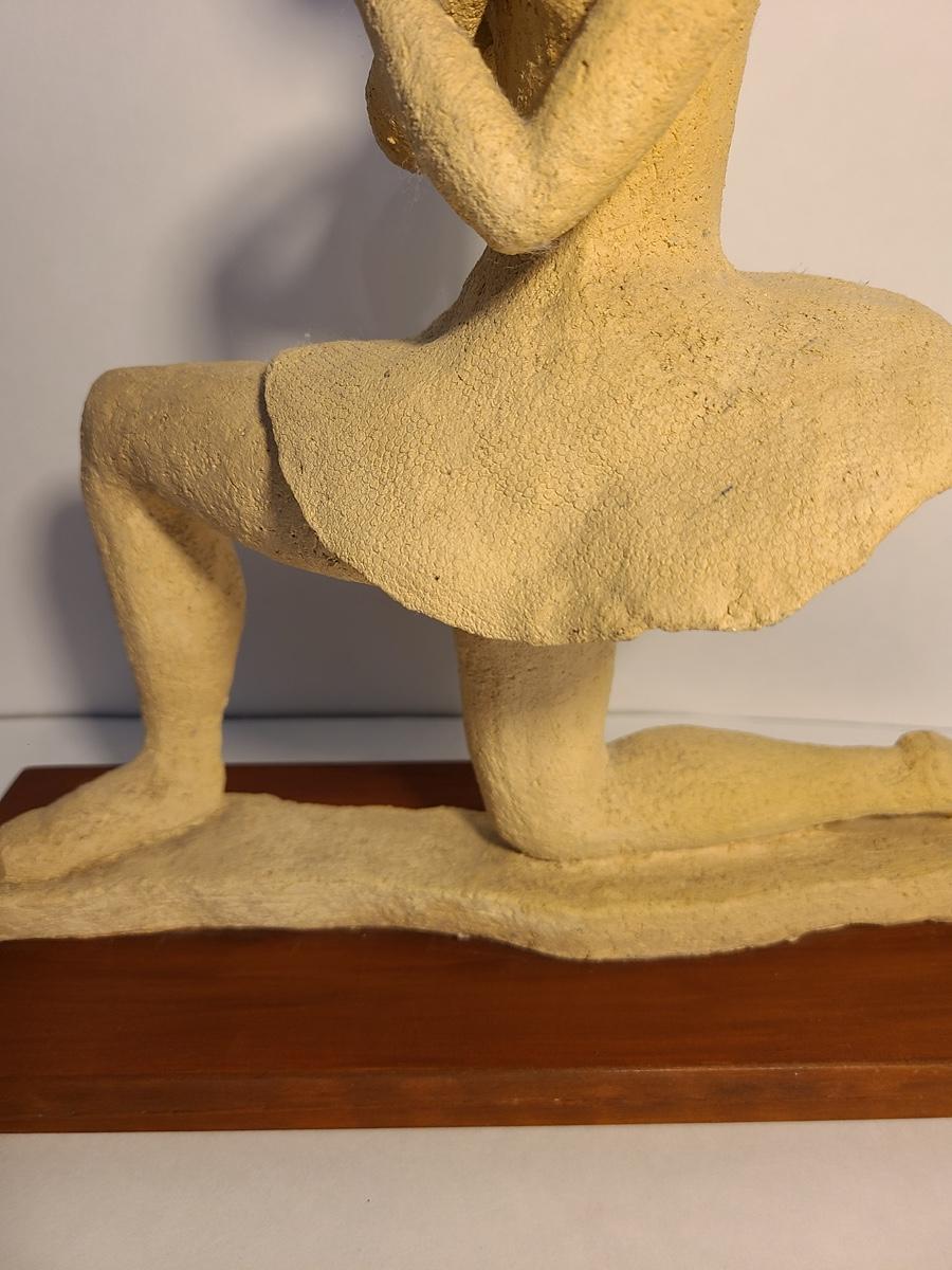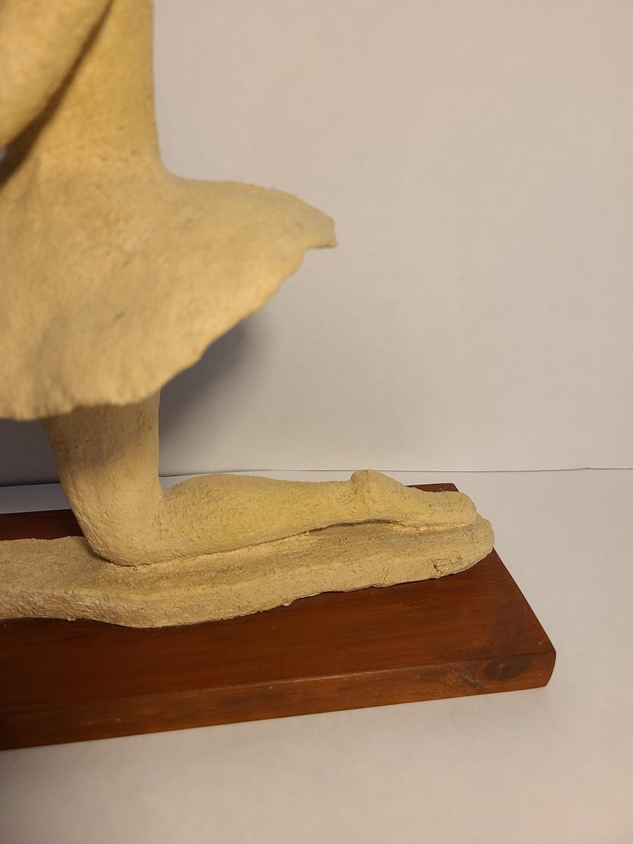 This beautiful sculpture looks to be made of plaster and sits on a wood base. It is marked E.H. Elaine Haskell was the clients grandmother and was an artist in Maryland. This piece is a beauty and has weight to her. Please see all pictures as they are the best representation of the items. The pictures show condition, measurements if taken, and what is included in the lot. Due to the large amount that we photograph and the time frame, we are not always able to take measurements. All items unless noted, are pre-owned and have been used. If you purchased furniture, you must bring help. We do not allow one person to carry large furniture out on their own. Bring help, tools and a truck for the safety of our client’s homes, and your personal safety. Company policy. Thank you.