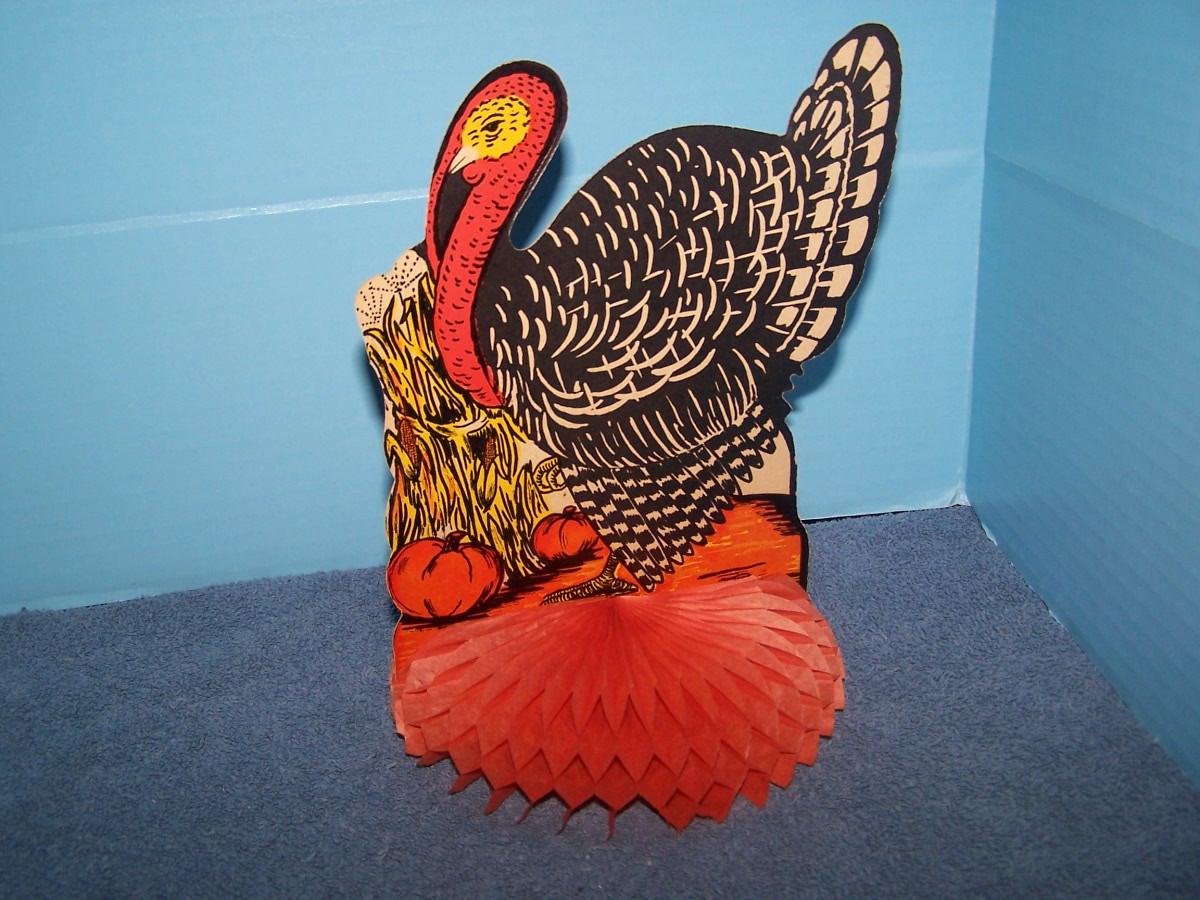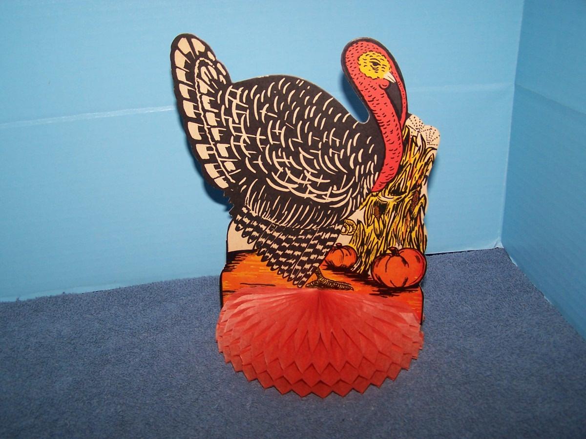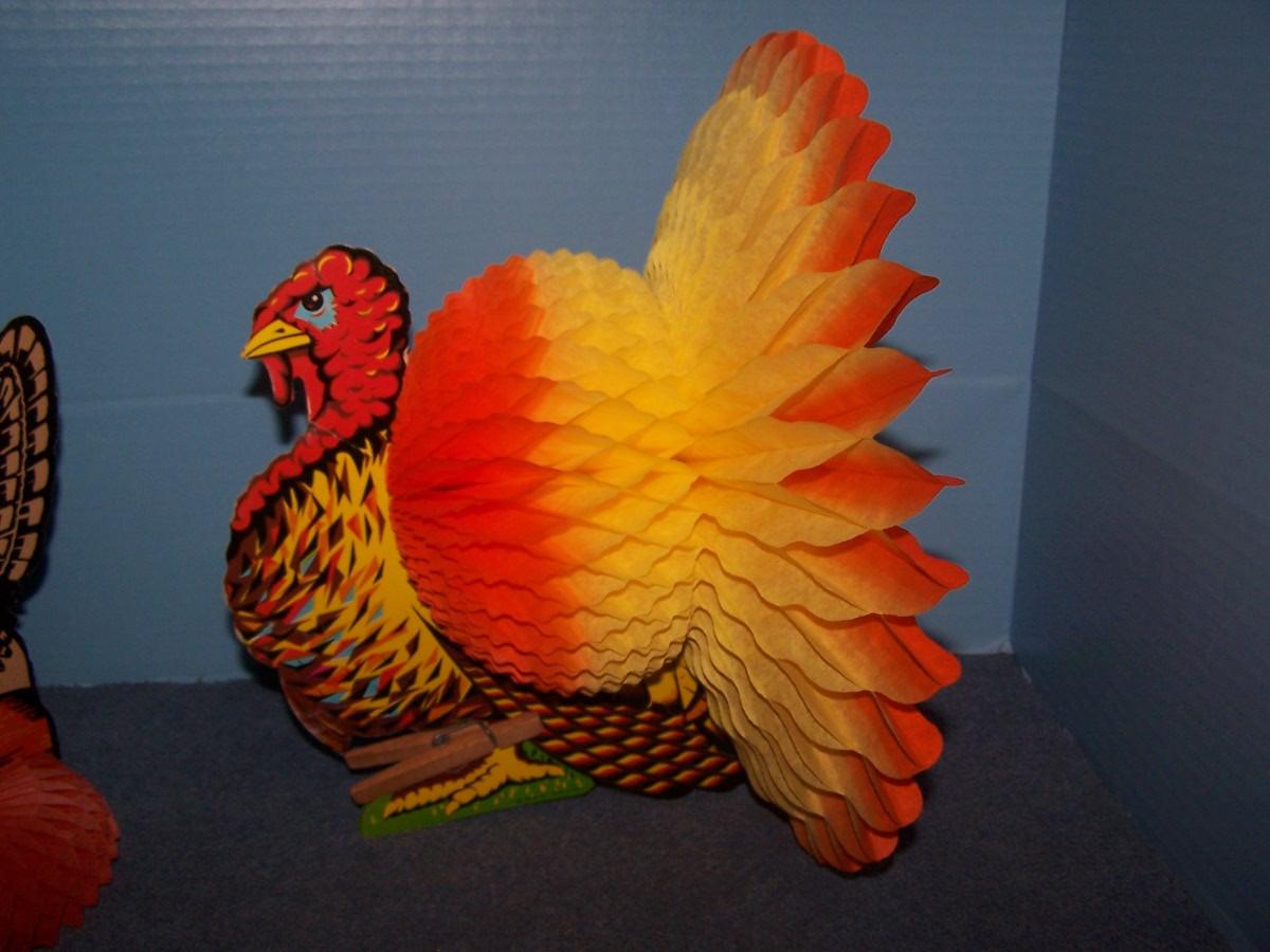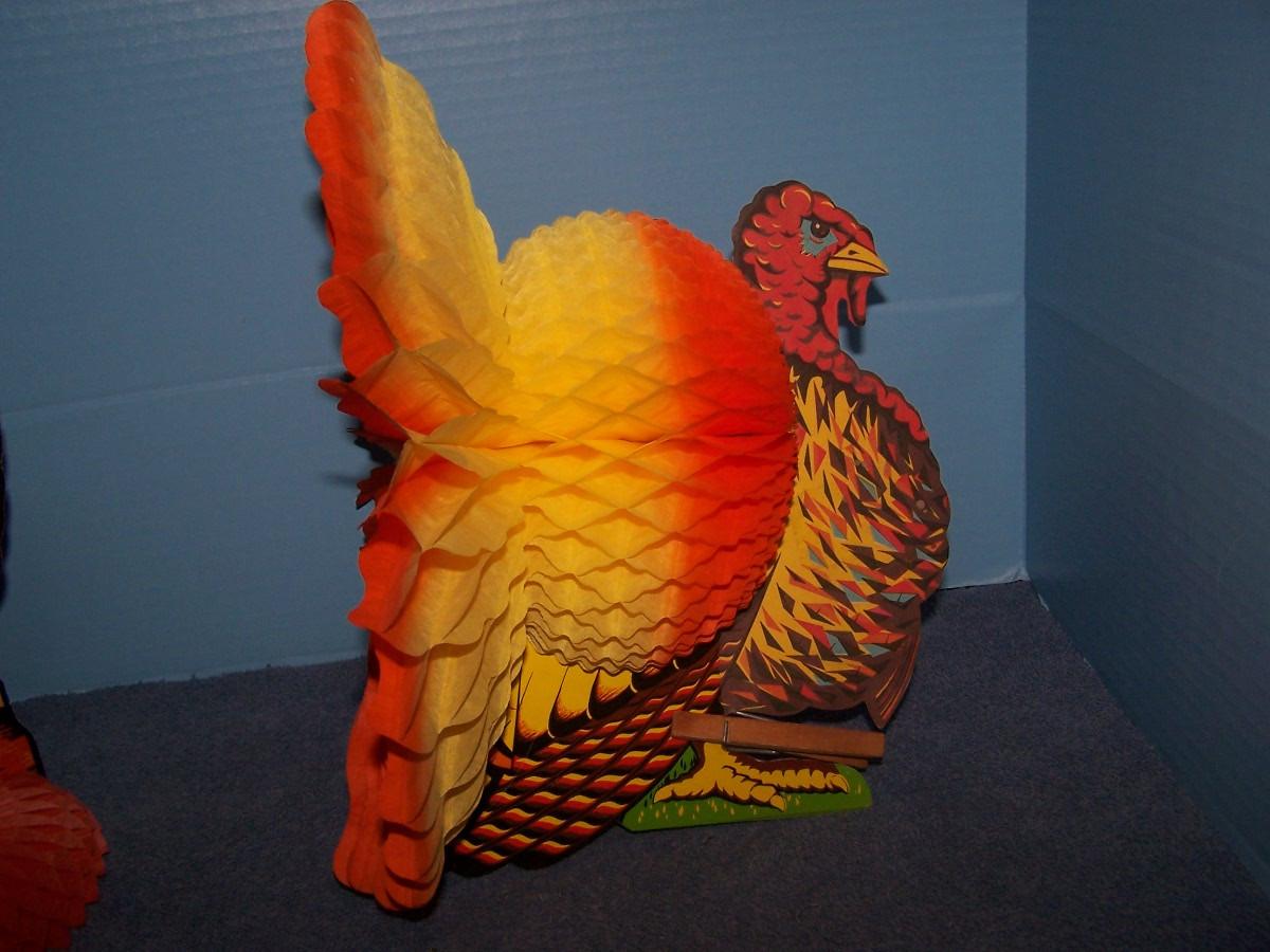 THESE ARE 2 FAB VINTAGE THANKSGIVING HONEYCOMB TURKEYS!!! BEISTLE TURKEY IS 9 5/8'' TALL... SOME BENDS, LIGHT WEAR..