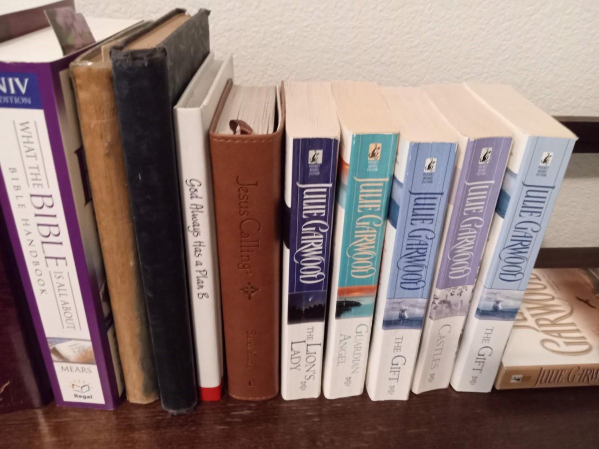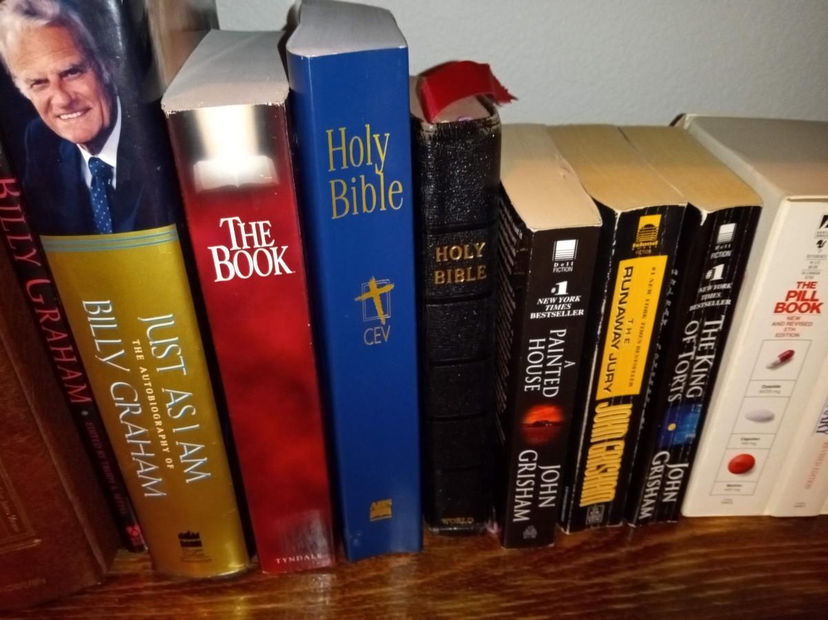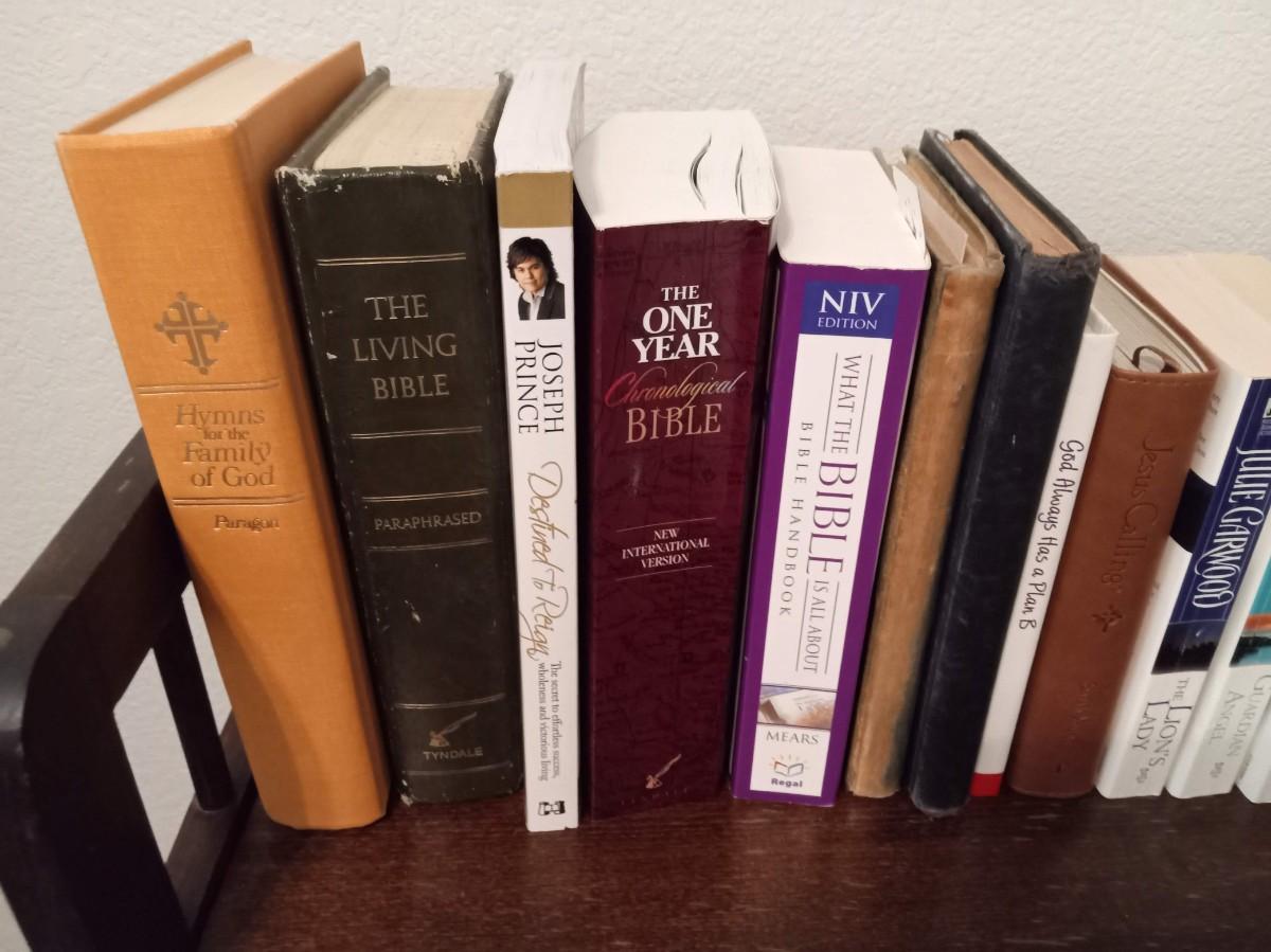 THE BOOKS ARE MOSTLY RELIGIOUS AND INCLUDE BIBLES AND HYMNALS