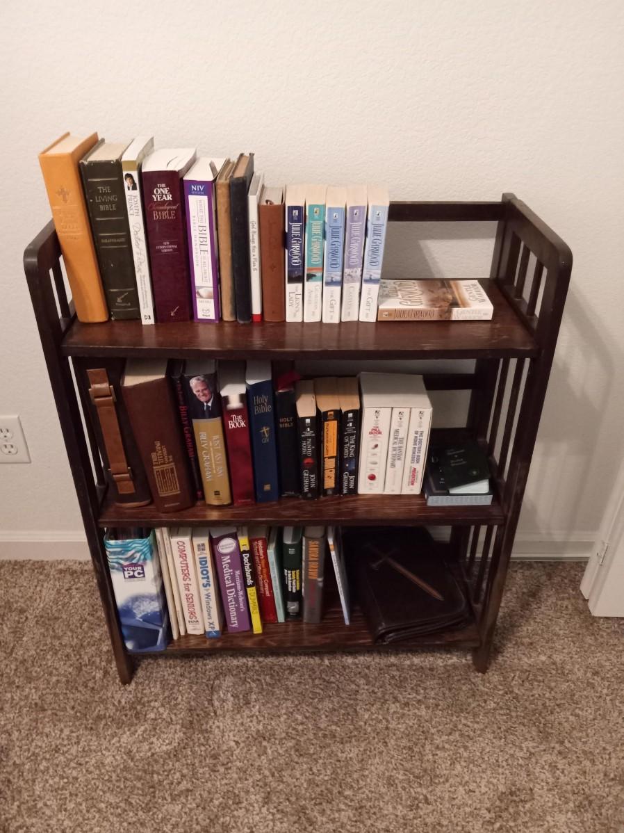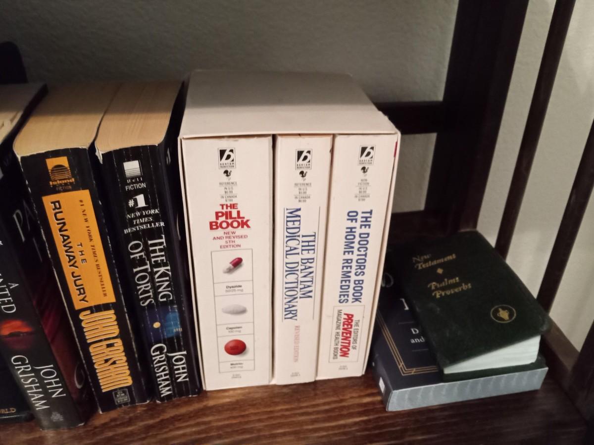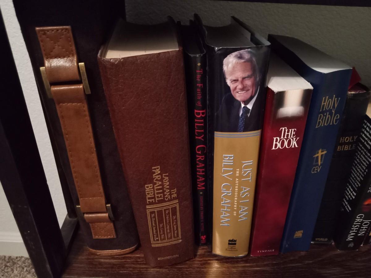 THE BOOKS ARE MOSTLY RELIGIOUS AND INCLUDE BIBLES AND HYMNALS