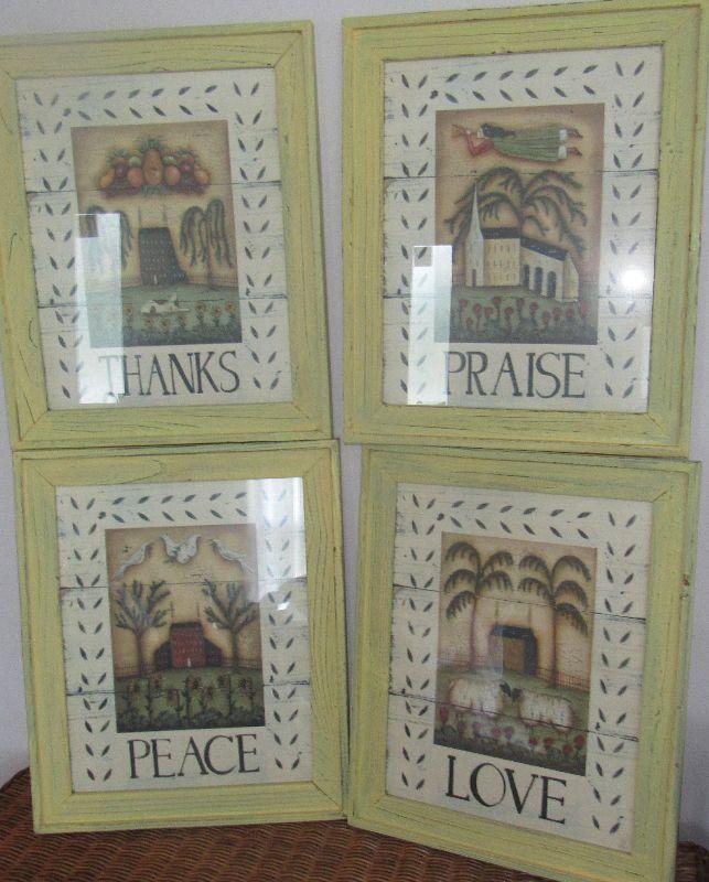 Lot 151 - Four Prints In Frames, Thanks, Praise, Peace & Love