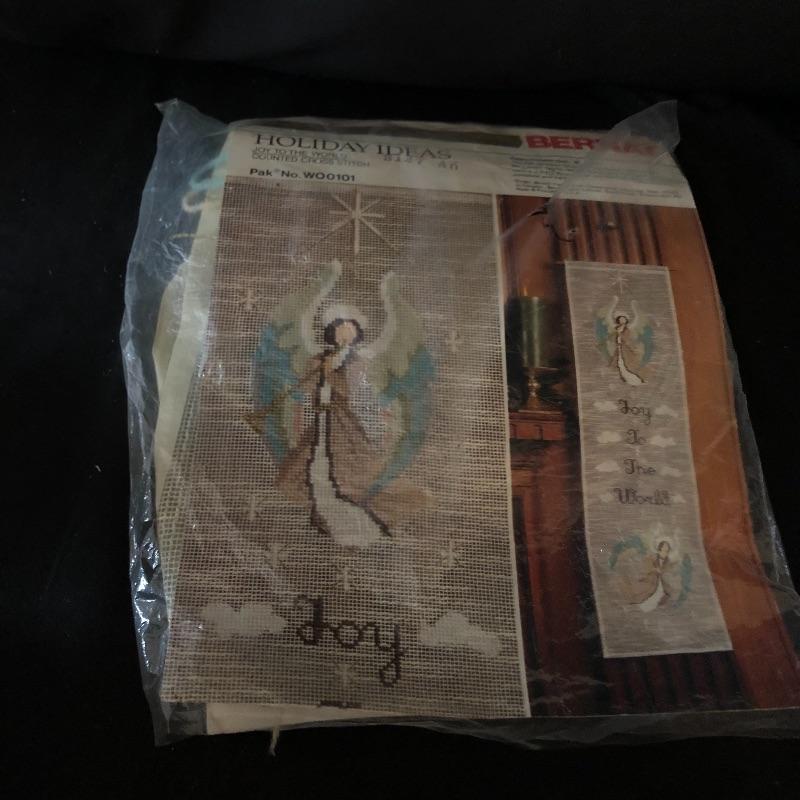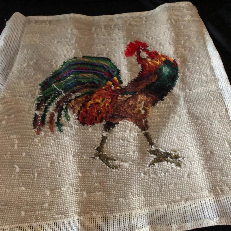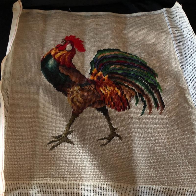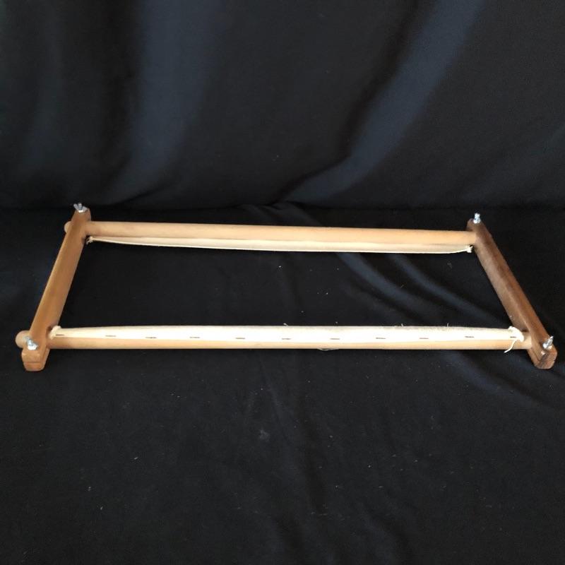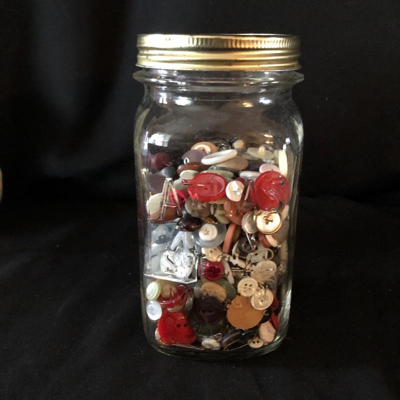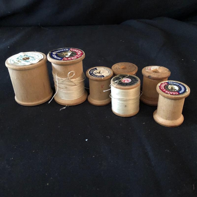 A nice array of needlepoint items. Lot includes darning tools, tapestry frames, jar of buttons, frames, magnifier, strawberry pin cushions, wooden spools, round wooden box and more. Round box measures 14.5”D x 5” tall.