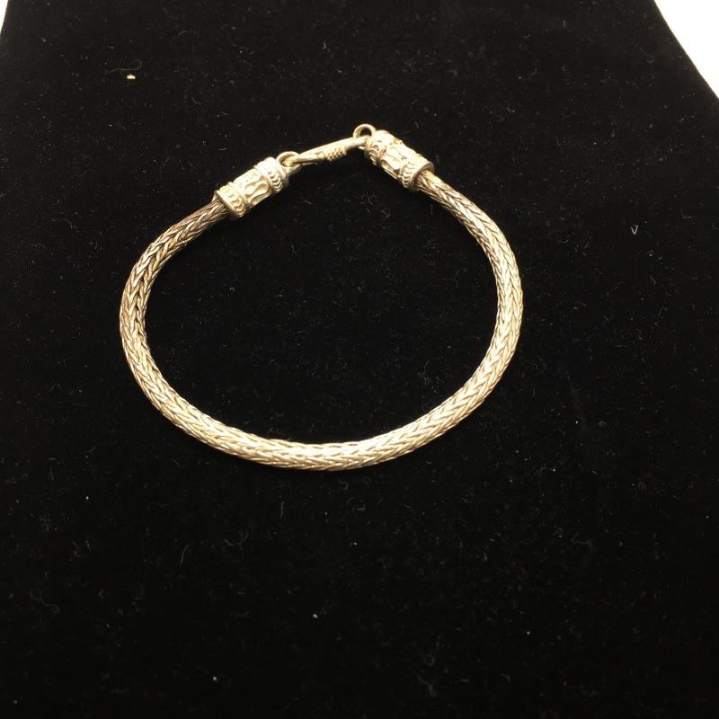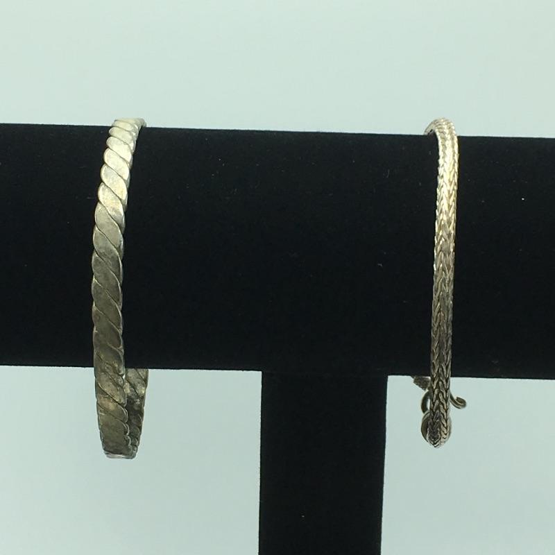 Five Sterling silver necklaces in a variety of lengths and styles with the longest one measuring 28” and two sterling silver bracelets with one being solid.