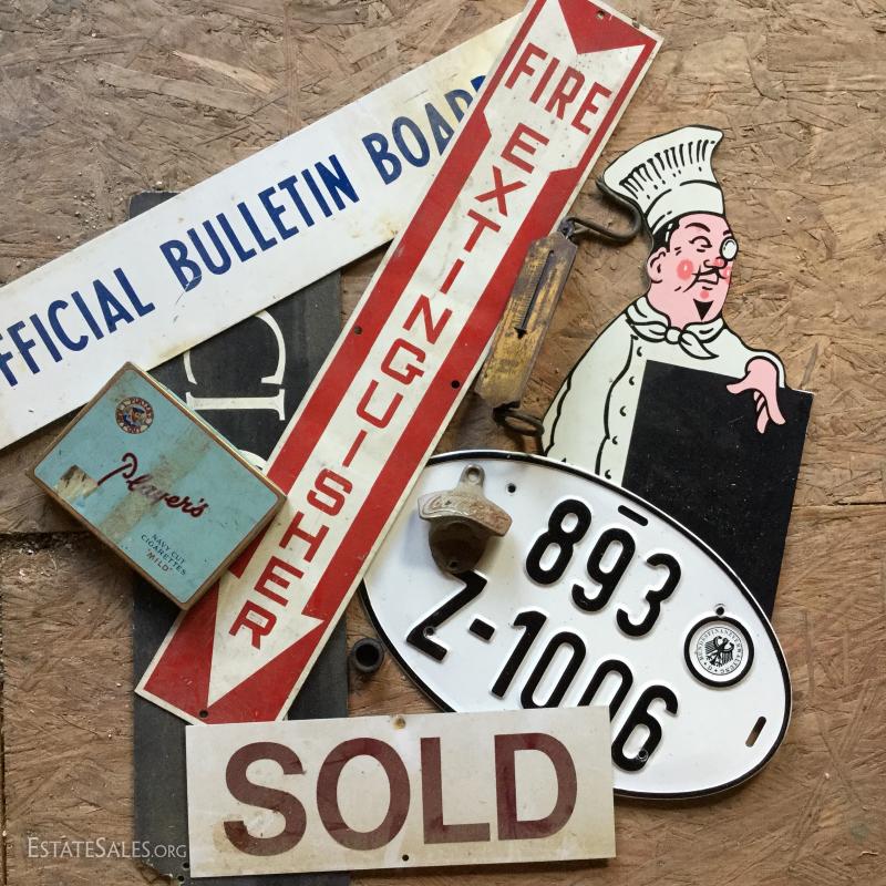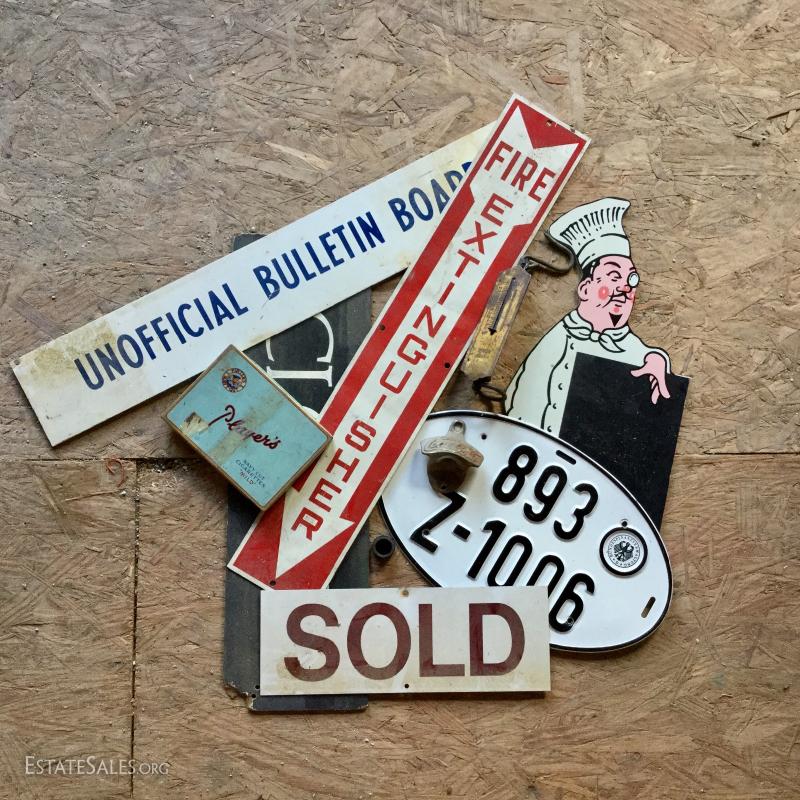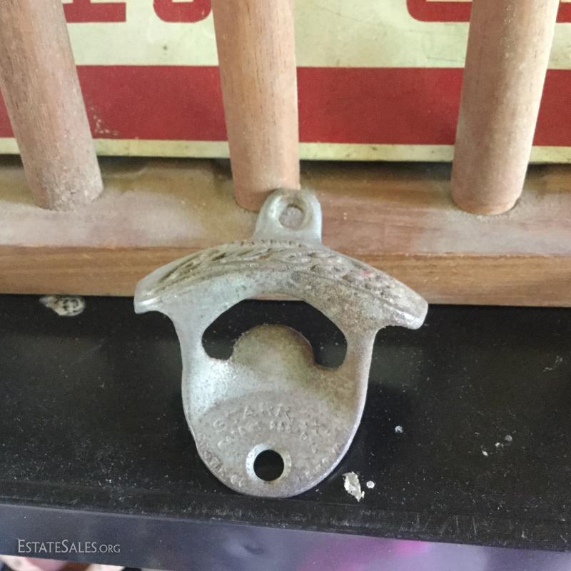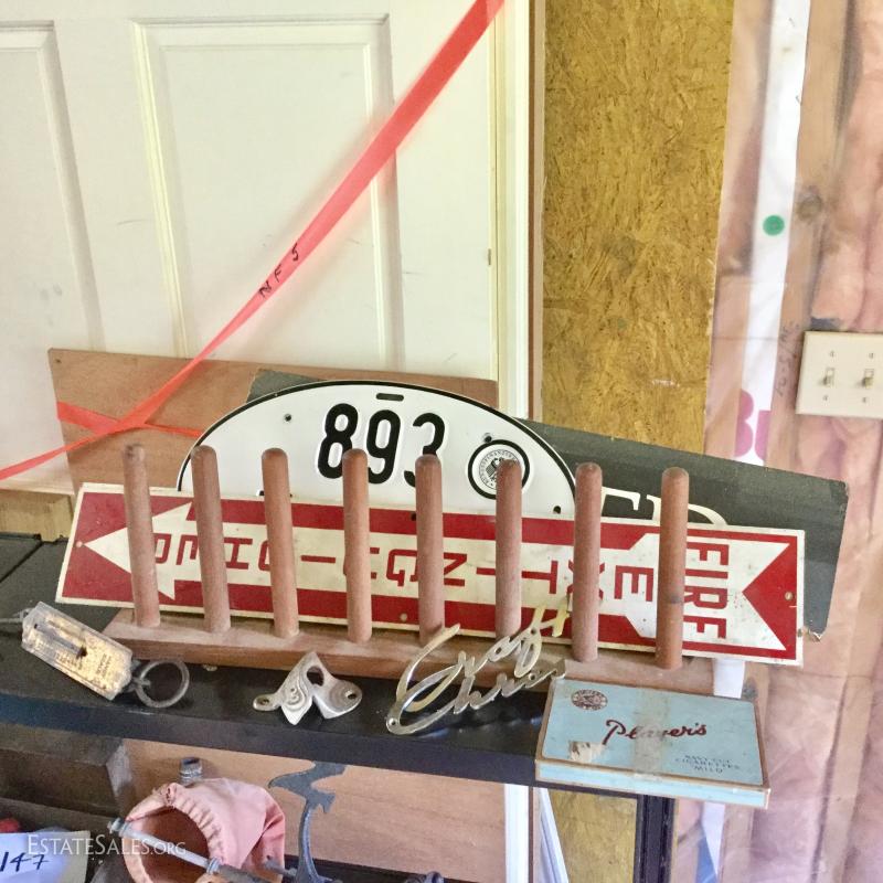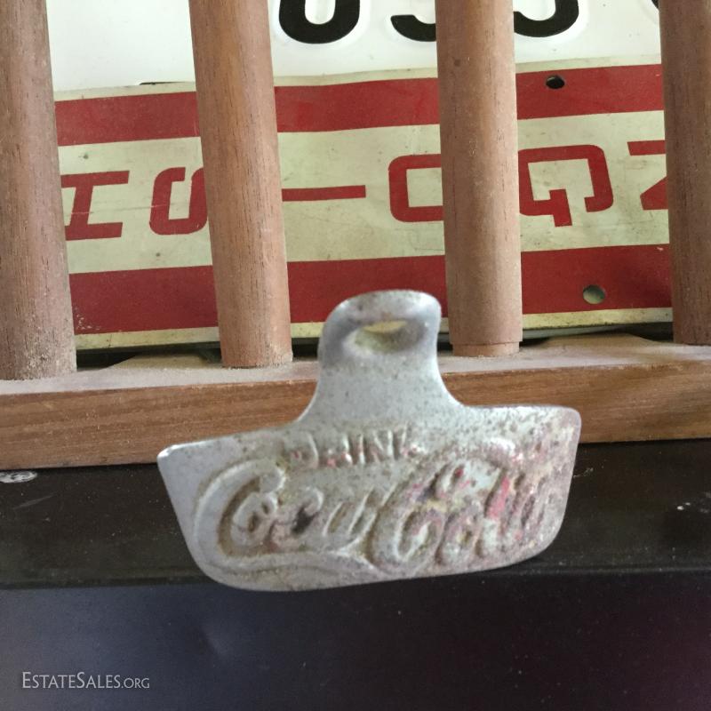 Lot of Vintage Metal Signs including Coca Cola wall-mount bottle opener, Chris Craft detail emblem and wood hanging racks. Lot is available for shipping and local pick up in Hendersonville, NC.