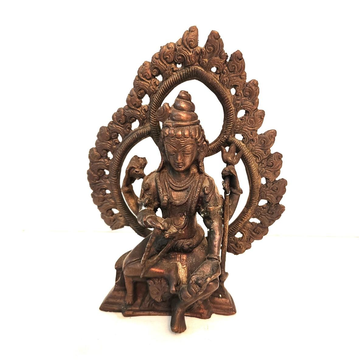 Solid brass seated SHIVA figure - 20th century. Supreme Lord Shiva is usually shown in deep meditation or dancing the eternal dance of destruction. This seated version shows the God sitting atop a small demon figure called "Apasmora", the enemy of Enlightenment. 7" tall,5.5" across.