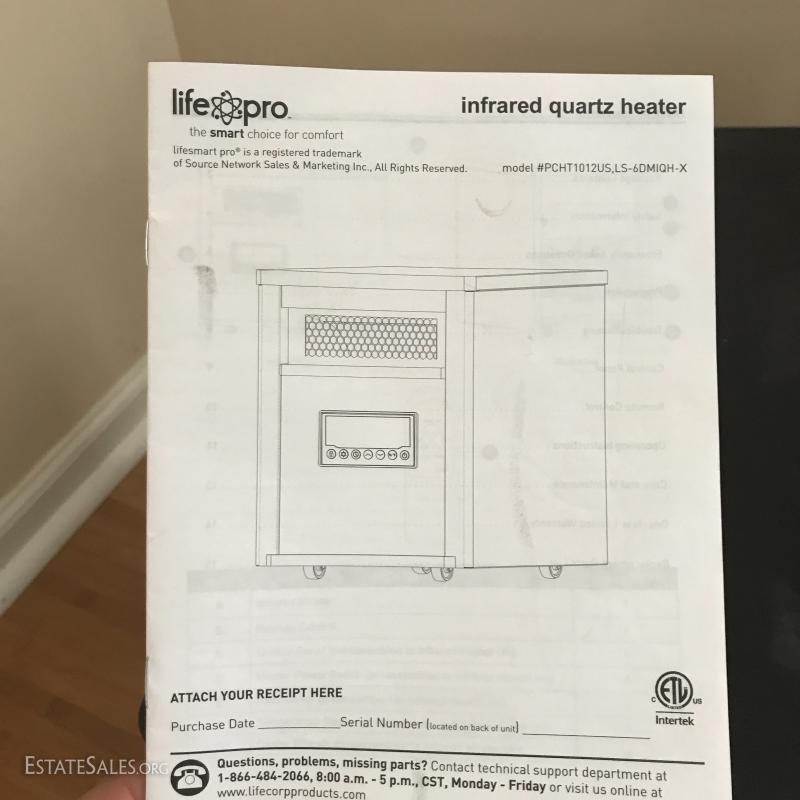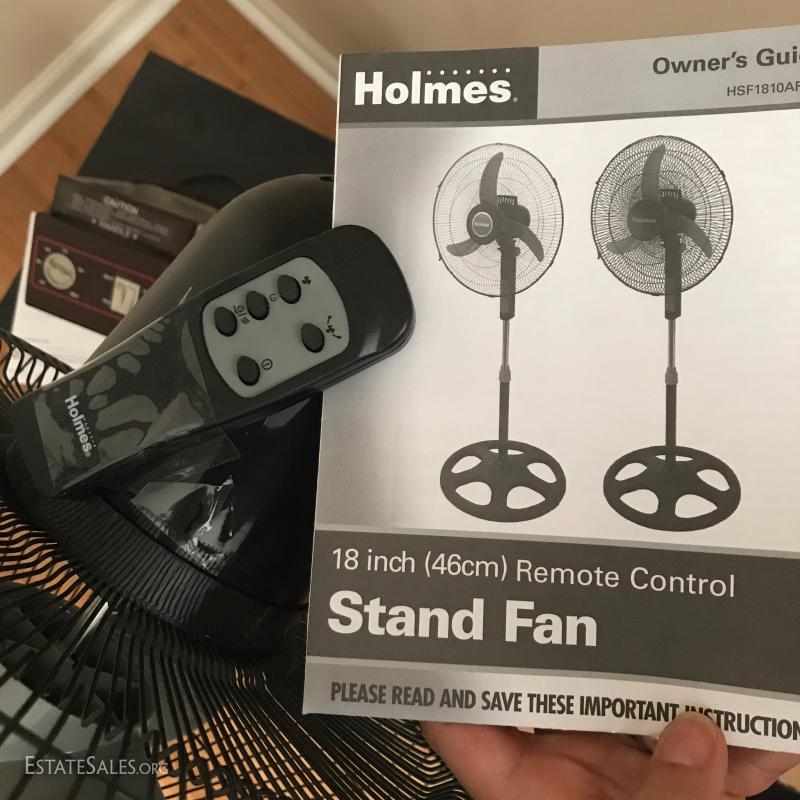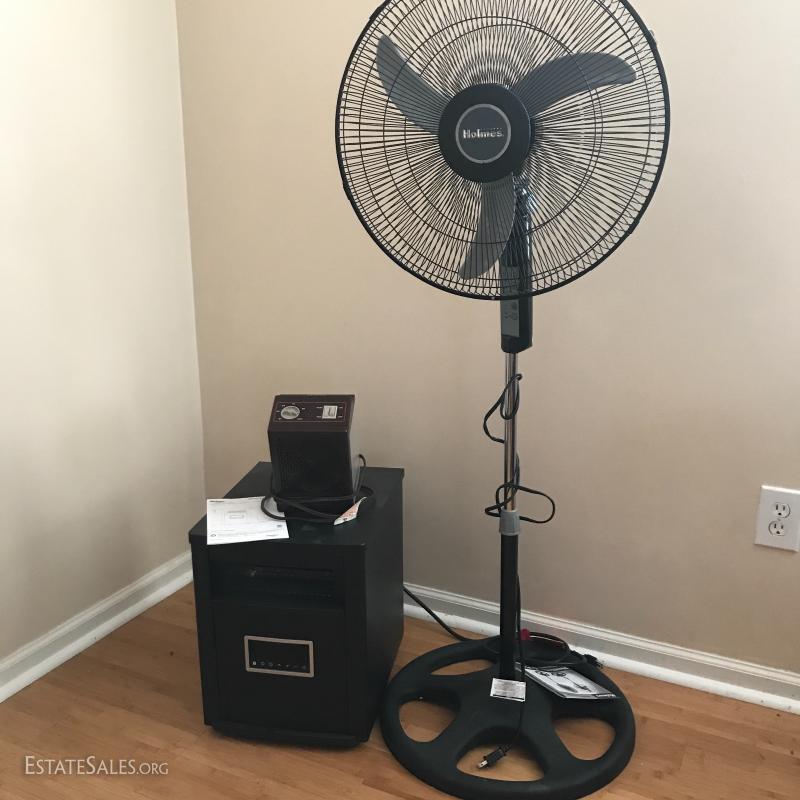 Nice heavy duty standing oscillating fan with remote by Holmes. 54"h. Two portable electric heaters. One small personal heater is 6" l x 5"w x 8"h. Larger like-new Life Pro Infared Wuartz Heater. 16"l x 13"w x 16.5"h. See pictures. No Shipping. Local Pick up in Mills River, NC.