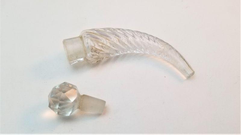 Wonderful "lie-down" scent bottle - early 20th century - with ground glass stopper. Good antique condition - about 3.5" long.