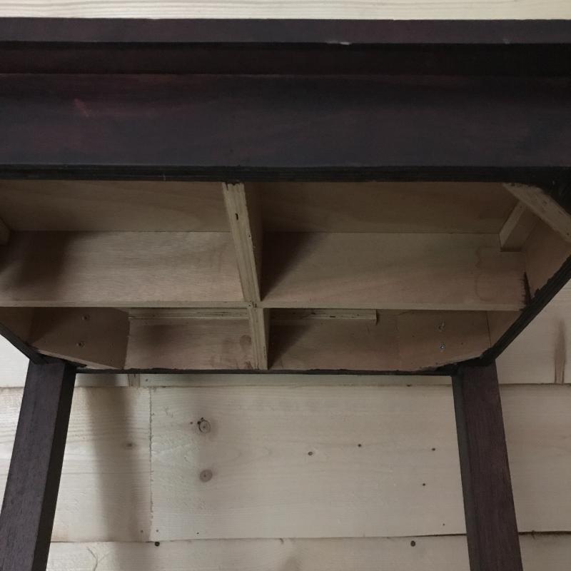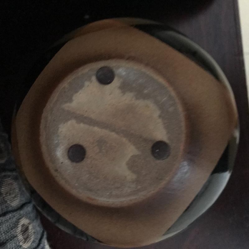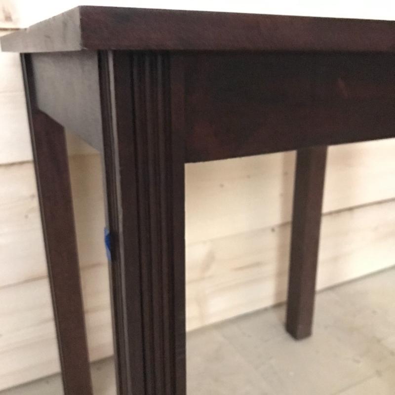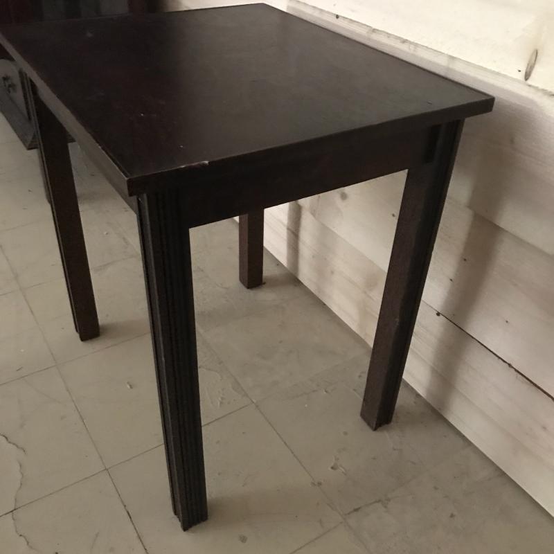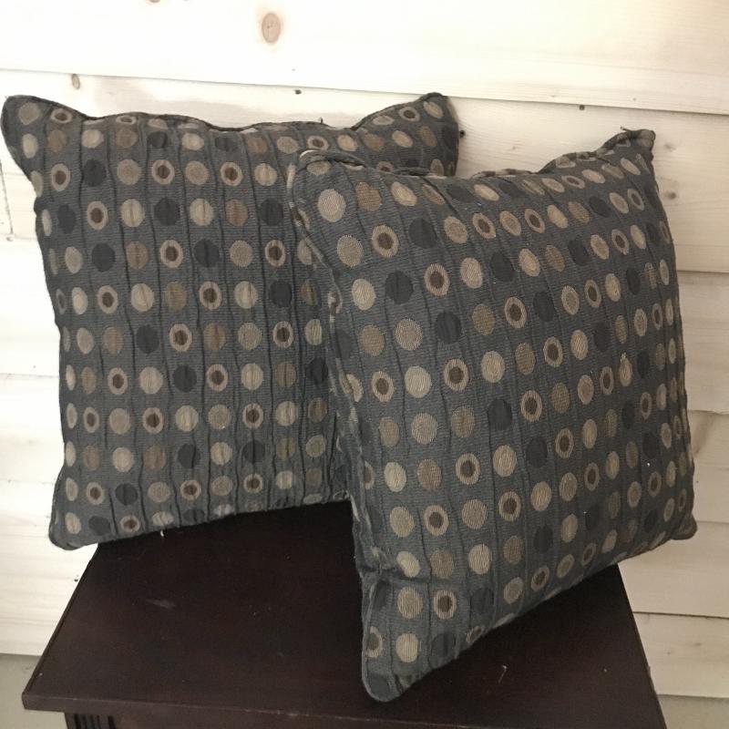 Lot includes MCM design vase 6”d x 7”h. Dark brown wood table 24.5” x 20.5” x 26.5”h. Also includes two matching 21”square pillows. No shipping. Local pick up only in Maggie Valley, NC.