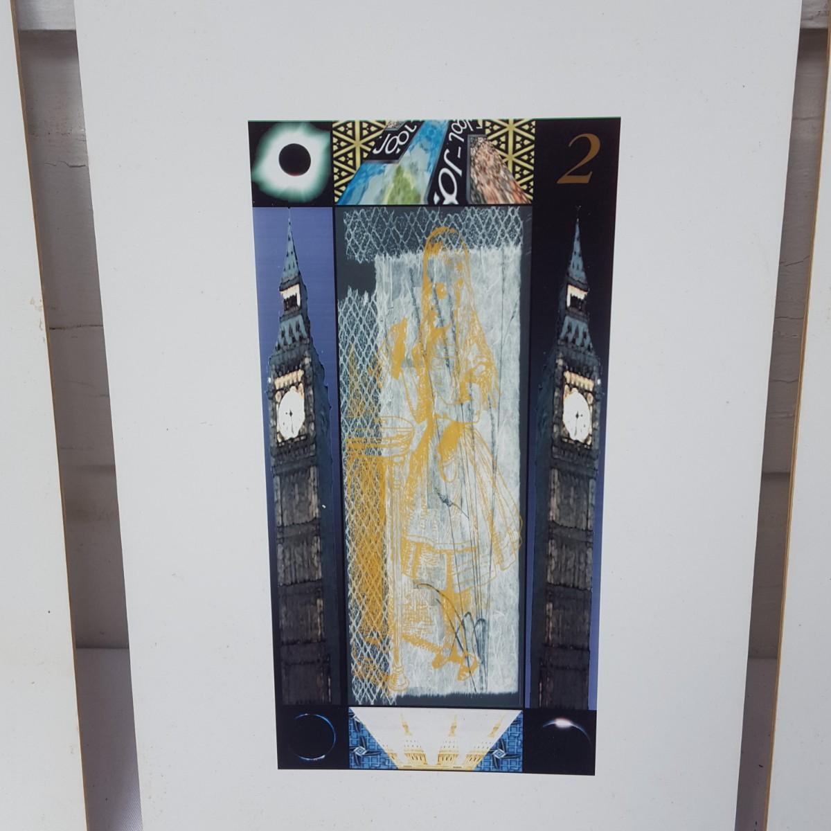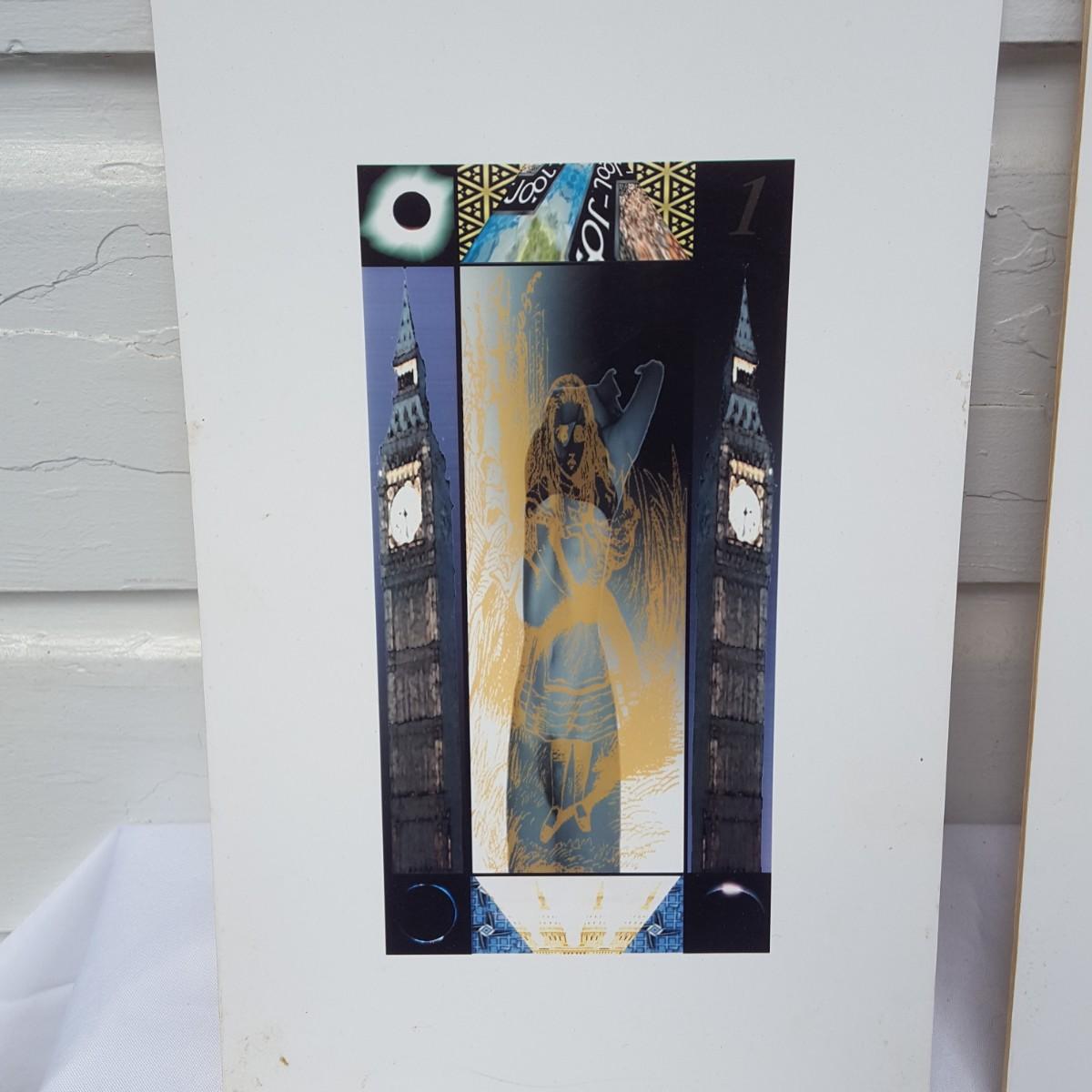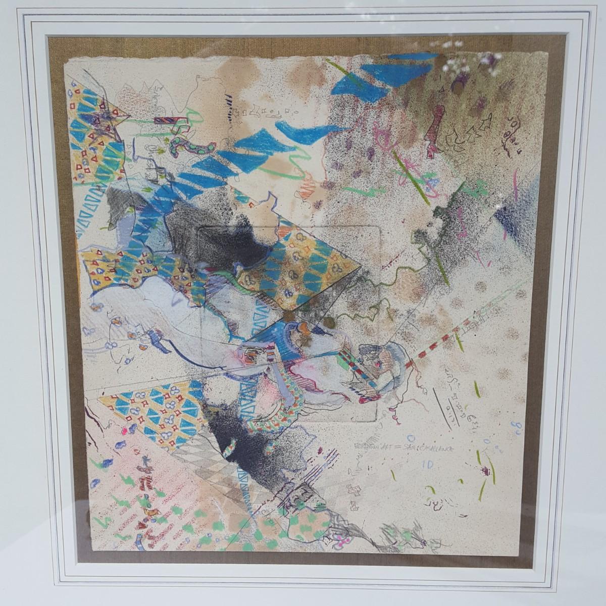 Truly, this piece is one of a kind. This piece is pencil and colored pencil and measures 20x17x1/2 inches. It is framed in a gold fleck with white matting. There are several names on the artwork so it is unsure of who the artist exactly is. This lot also contains 3 similar art pieces on foam boarding that measure 14x8 1/2 inches. Shipping available