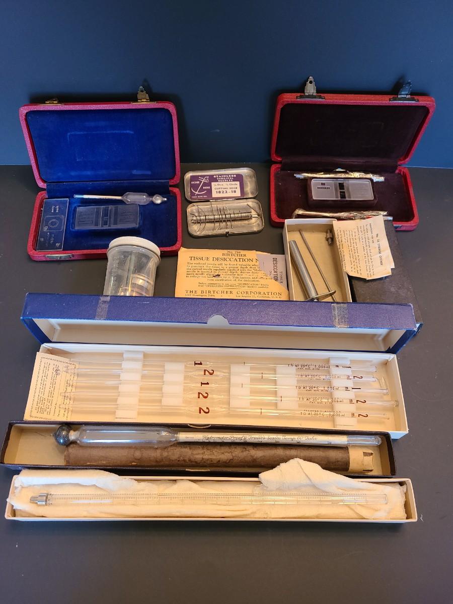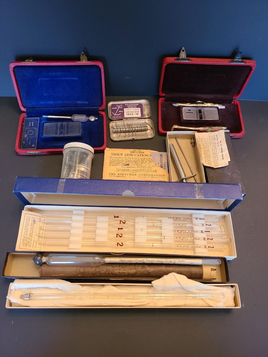 Vintage and antique medical equipments. One of the long glass tubes is broken the others are intact. There are two antique vials with mercury in them, this can be hazardous so for collectors only. Please see all pictures of these antique medical supplies, they are all as found.