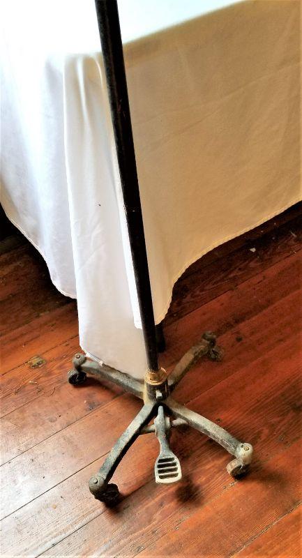 Vintage Store mannequin on metal stand - metal base. Has been stored for decades, so the wheels are gummed up. Measures about 61" tall.
