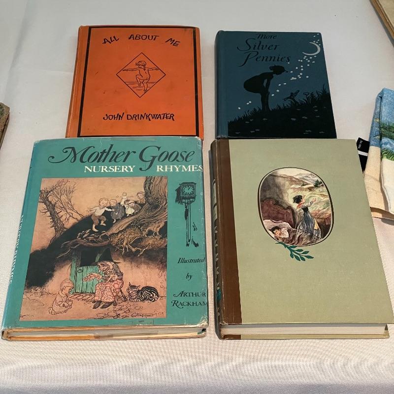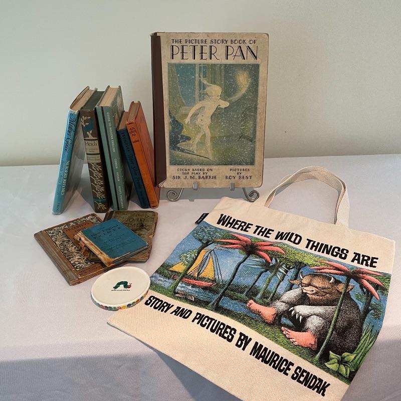 Here’s some special finds! A small collection of both vintage/antique reference and fiction books. The beauty of Peter Pan is eye catching. This book is about 9.5” x 13”. Both Primer books and Peter Pan have significant spine damage. Lot includes other classics like Heidi, All About Me, and Mother Goose. Show your love for reading by carrying your books in a “Where the Wild Things Are” tote and set your favorite beverage on “The Very Hungry Caterpillar” coaster. See images. Shipping available.